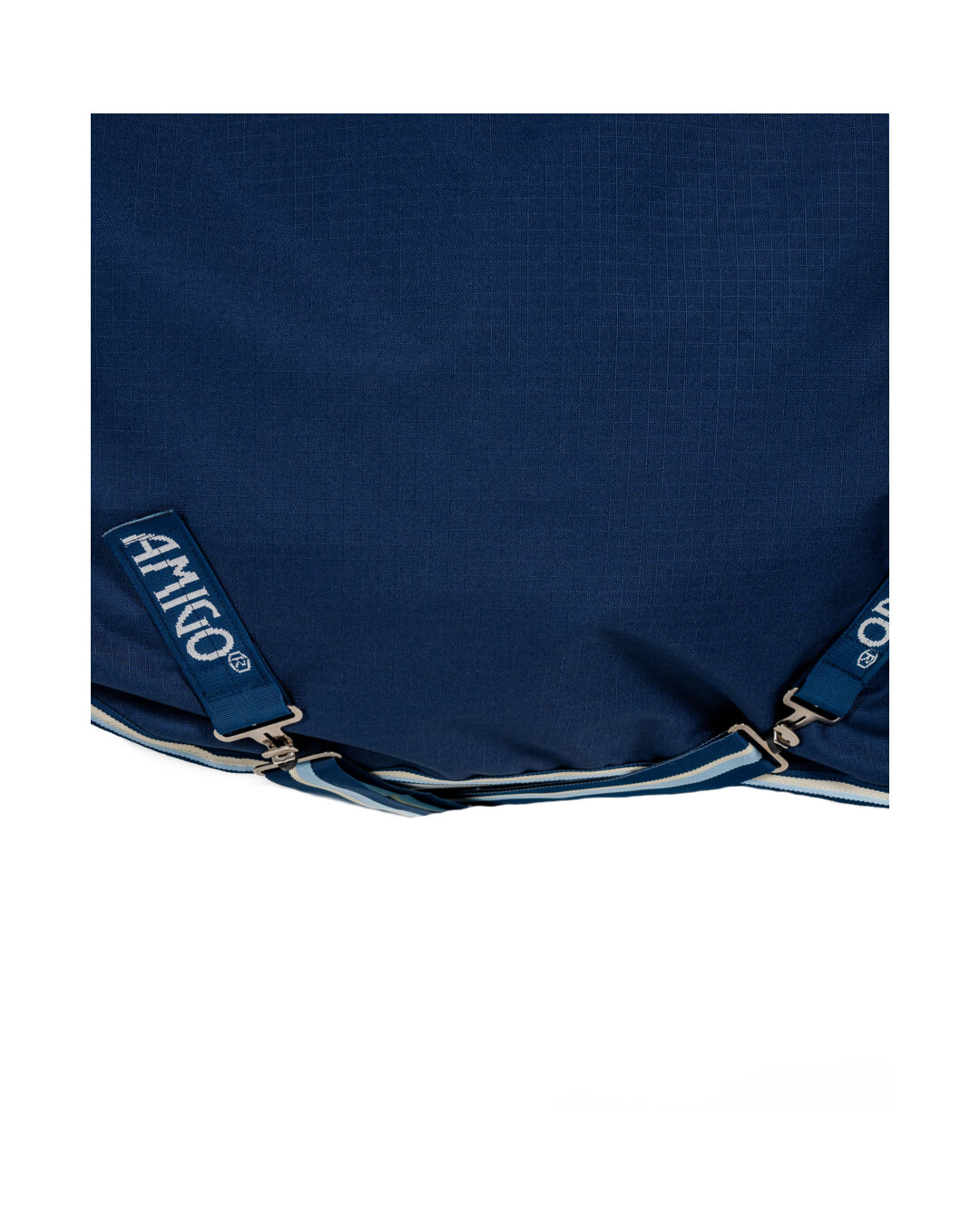 Durch die Halsteilösen und Unterdecken-Laschen ist die Decke mit dem Amigo Ripstop 900D Halsteil und dem Horseware Unterdecken-System kompatibel, sodass du sie flexibel an verschiedene Witterungen anpassen kannst.