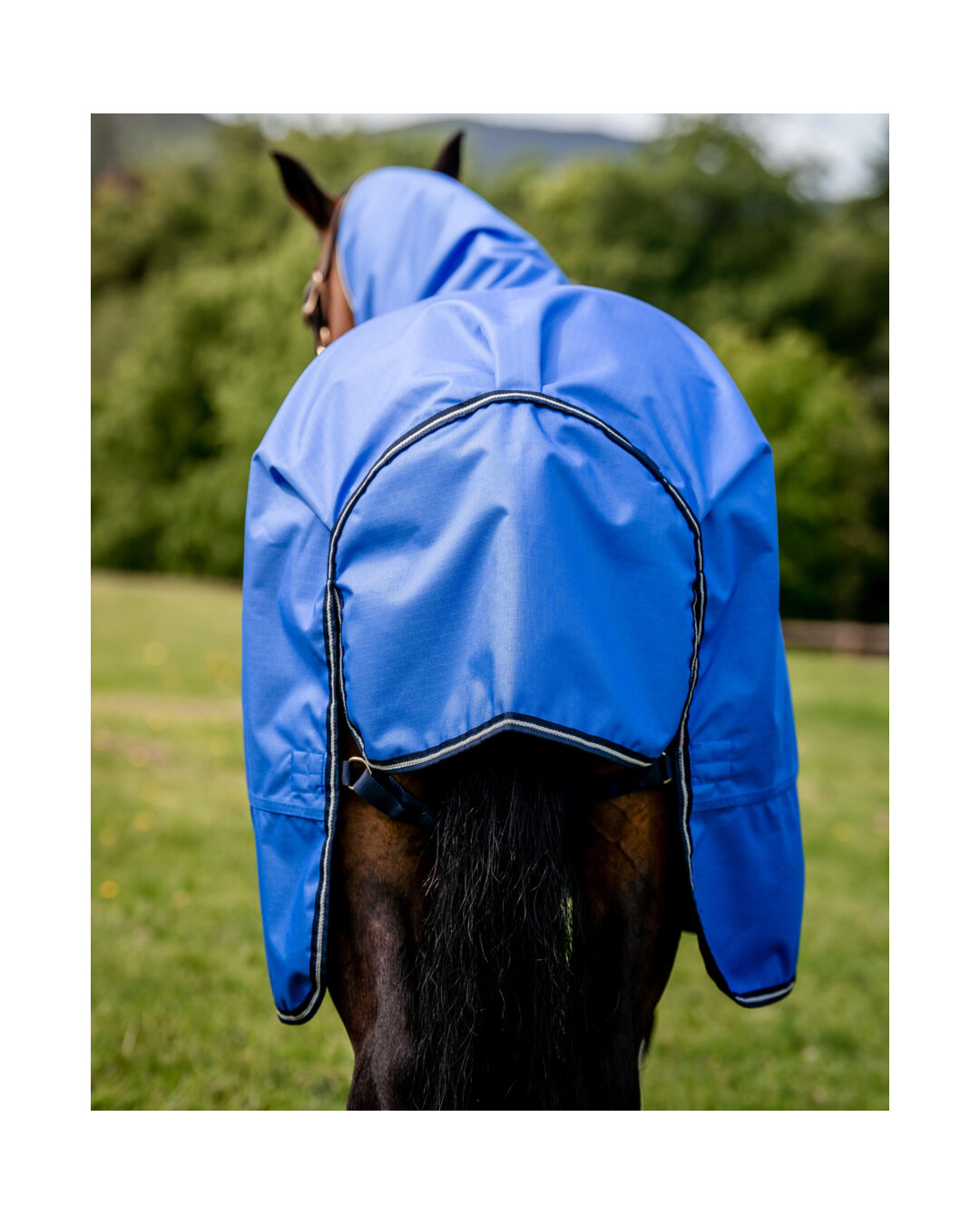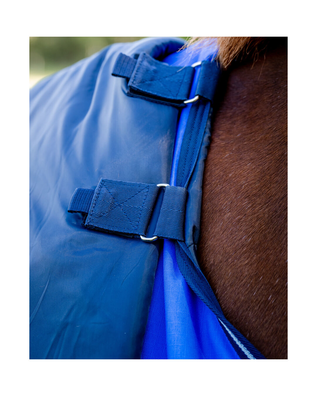 Diese Regendecke ist aus einem starken 600 D Ripstop Polyester gefertigt, das nicht nur wasserdicht und atmungsaktiv ist, sondern auch das Fell deines Pferdes durch das glanzgebende Polyester-Innenfutter schützt und Scheuern verhindert.