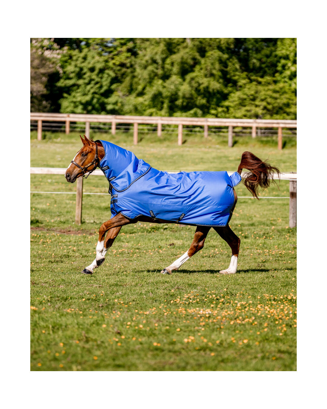Der klassische Schnitt mit einem Halsbereich und den geraden, doppelten Frontverschlüssen bieten eine vertraute Passform und einfache Handhabung. Der innovative Beinausschnitt ermöglicht deinem Pferd volle Bewegungsfreiheit, während die zwei gekreuzten Bauchgurte und der Schweifriemen dafür sorgen, dass die Decke auch bei Bewegung sicher sitzt.