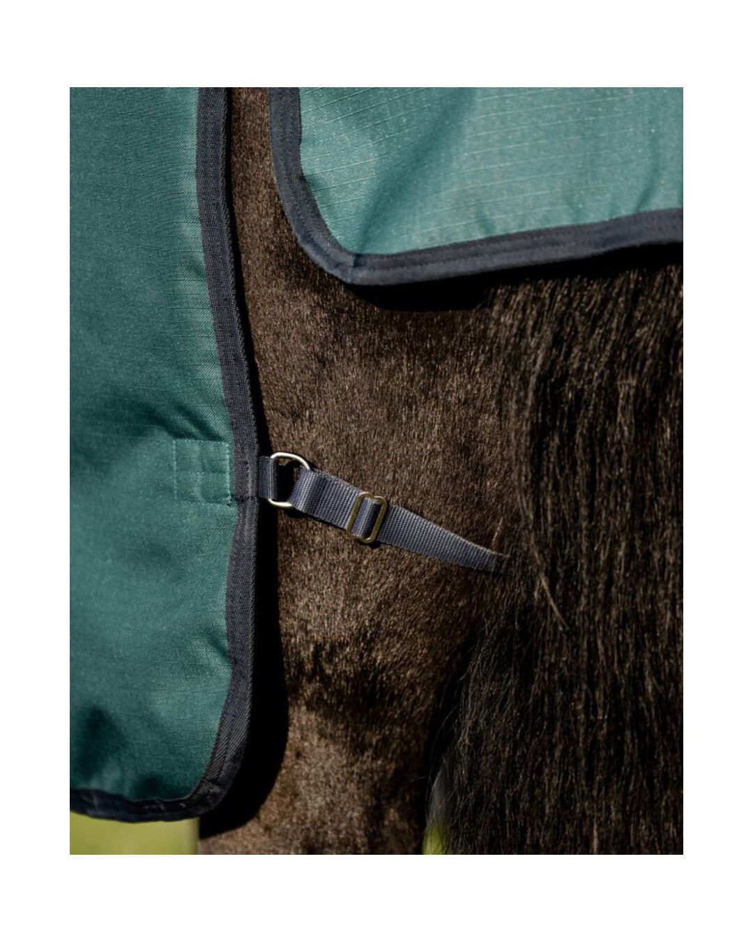 Das glänzende Polyesterfutter verhindert Scheuerstellen und fördert ein gesundes, glänzendes Fell. Die geraden Frontverschlüsse und die zwei Kreuzgurte sorgen für einen sicheren Sitz, während die Beinausschnitte die Bewegungsfreiheit deines Pferdes unterstützen. Ein abnehmbares Halsteil bietet zusätzliche Vielseitigkeit und Anpassungsfähigkeit an die Wetterbedingungen und die Bedürfnisse deines Pferdes.