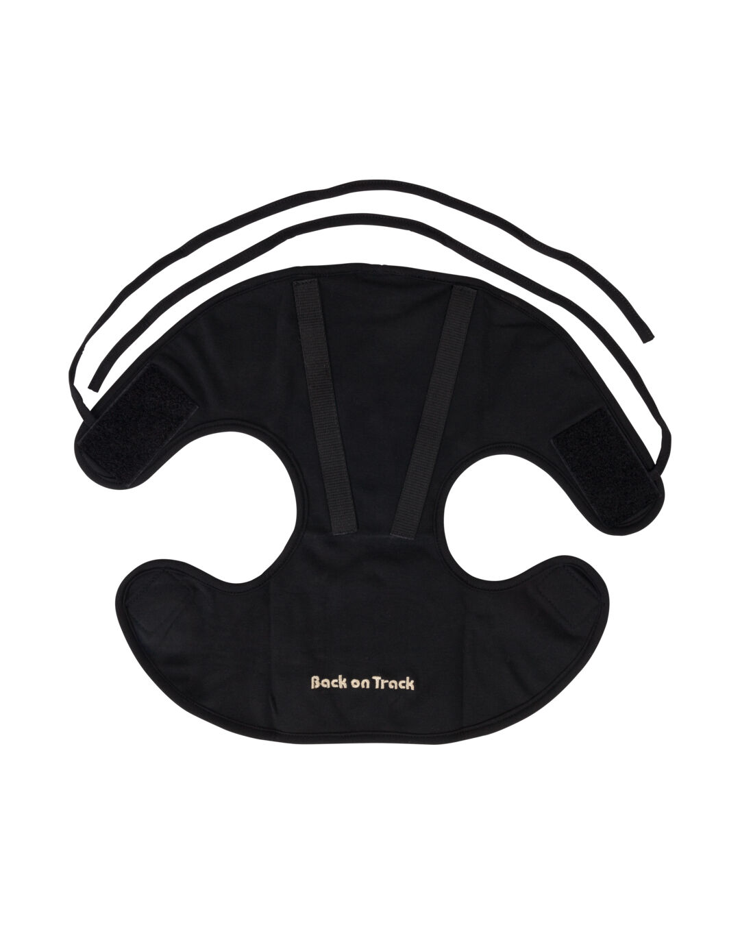 Der Genickschoner von Back on Track bedeckt sowohl Atlas- als auch Axiswirbel. Im Gegensatz zu anderen Produkten erstreckt sich dieser Schoner bis hinter das Genick, so dass der Welltex-Effekt auch hier wirken kann. Der Genickschoner kann vor dem Training im Stall eingesetzt werden, so dass die Durchblutung in diesem Bereich erhöht wird. Einem verspanntem Genick kannst du so bereits vor dem Training entgegen wirken. Die Klettverschlüsse sorgen für eine optimale Passform. Der Genickschoner ist zusätzlich mit Verstärkungen an den Außenseiten versehen, wo das Halfter/die Trense am Genick anliegt und hat ein Band, um es am Halfter oder dem Kehlriemen zu befestigen.