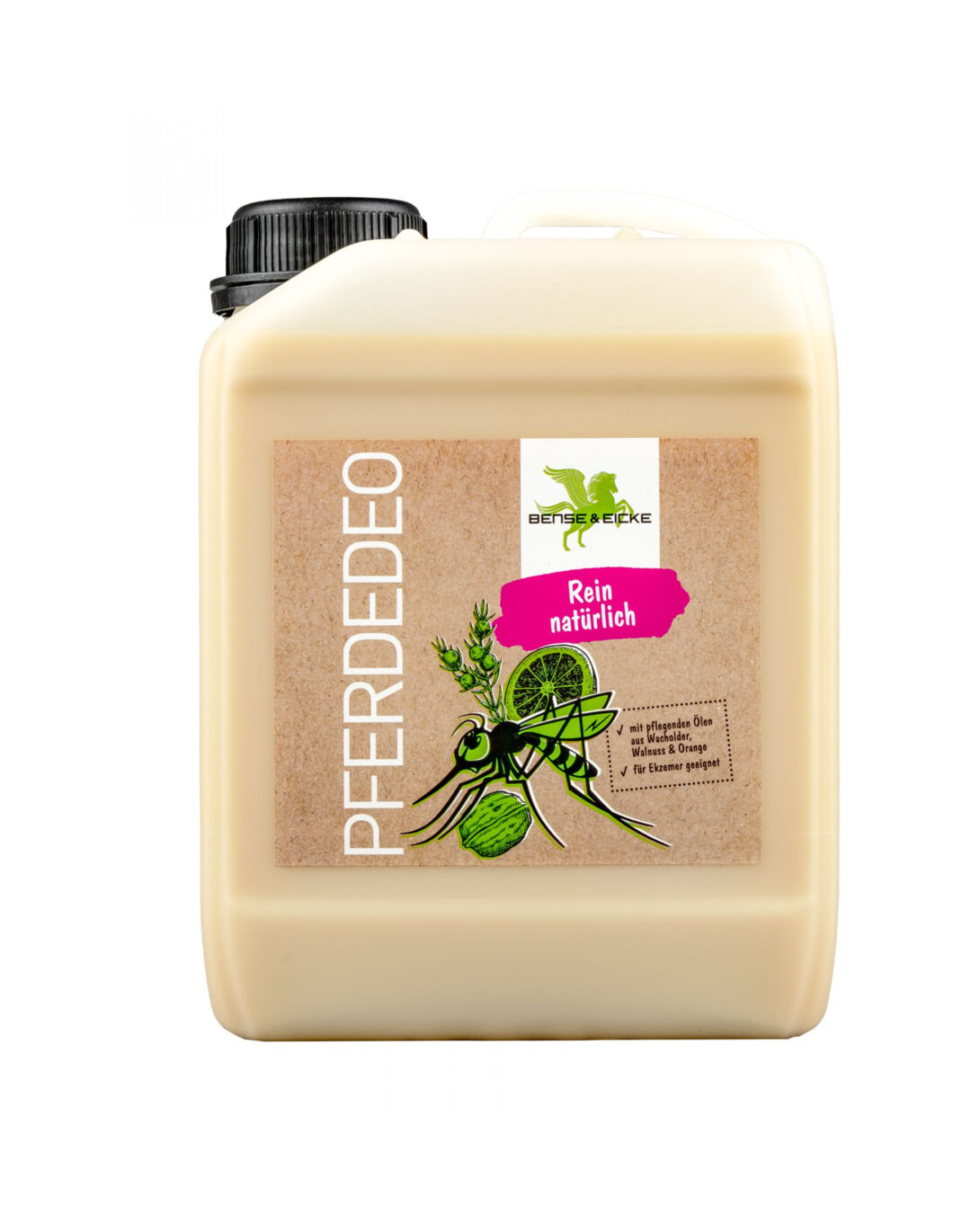 Das PferdeDeo von Bense & Eicke ist ein natürliches Deodorant für Pferde, das durch den Geruch milder und pflegender Öle wie Walnuss und Orange den Eigengeruch des Pferdes effektiv überdeckt.