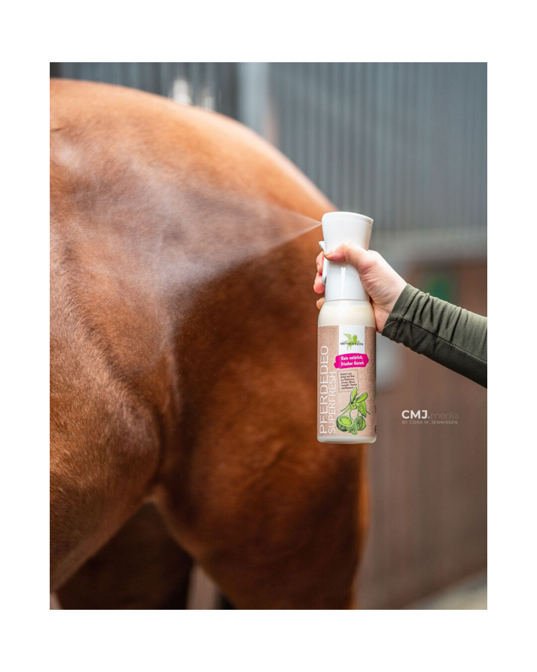 Entdecke das PferdeDeo Superfresh von Bense & Eicke, eine natürliche Lösung, um den Eigengeruch deines Pferdes effektiv zu überdecken.