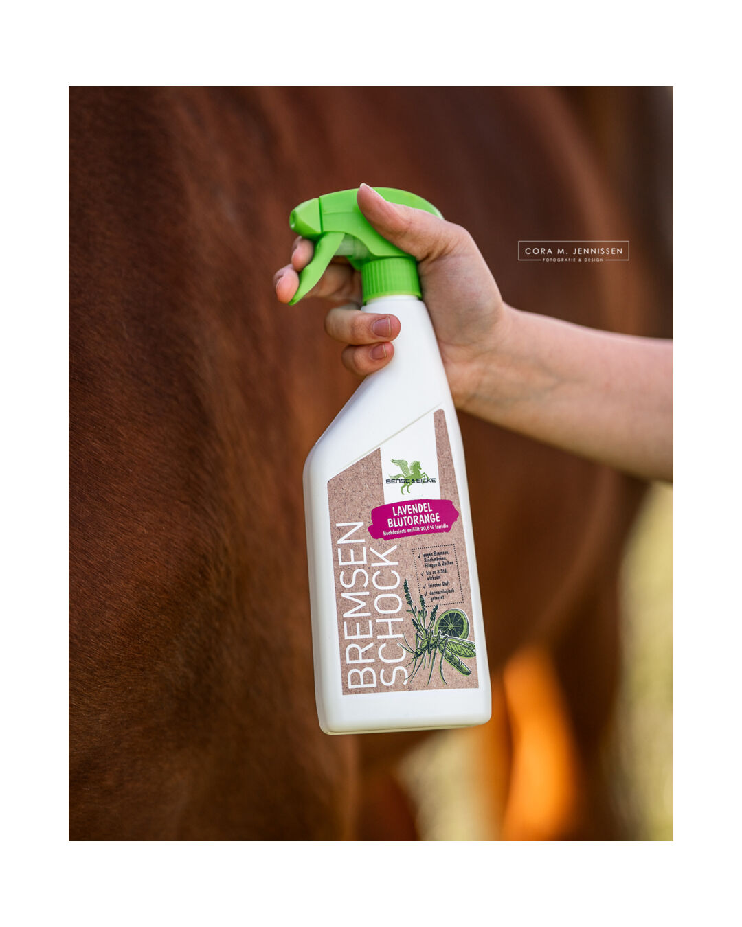 Das Insektenschutz-Spray BremsenSchock Lavendel-Blutorange von Bense & Eicke ist eine effektive Lösung, um dein Pferd vor lästigen Insekten wie Bremsen, Stechmücken, Fliegen und Zecken zu schützen. Die einzigartige Formel bietet bis zu 8 Stunden Schutz und ist dabei besonders haut- und materialfreundlich.