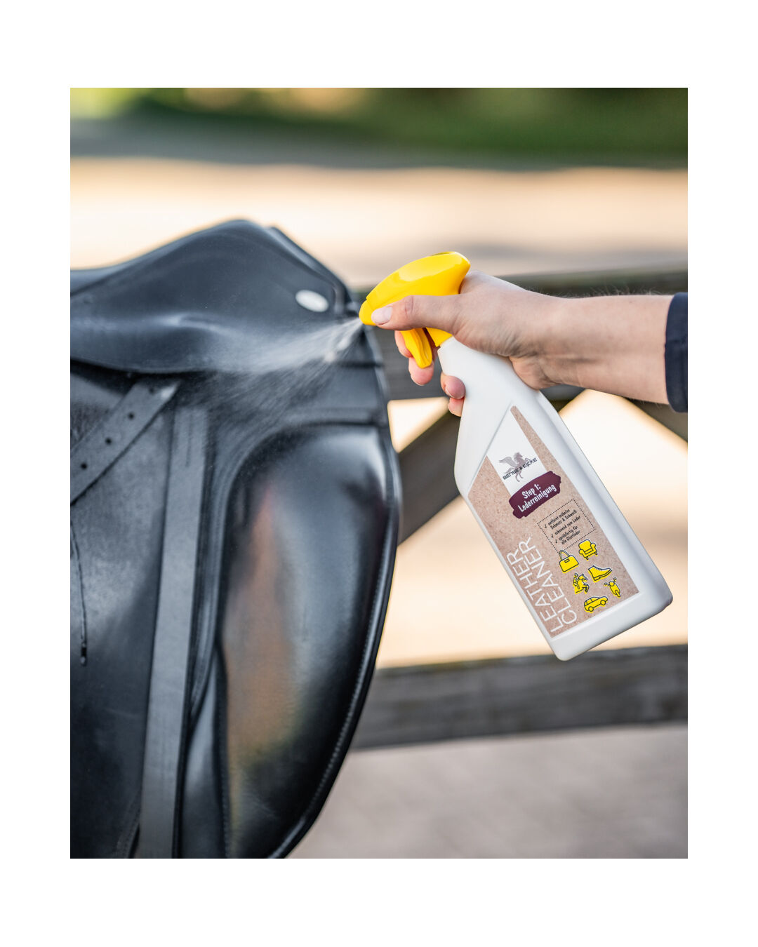 Nach der Anwendung hinterlässt der Reiniger eine saubere Oberfläche, die perfekt vorbereitet ist für die nachfolgende Pflege mit dem B&E Leather Conditioner (Step 2). Ob für Sättel, Zaumzeug oder andere Lederwaren – dieser Reiniger sorgt dafür, dass deine Ausrüstung nicht nur sauber, sondern auch langlebig bleibt.