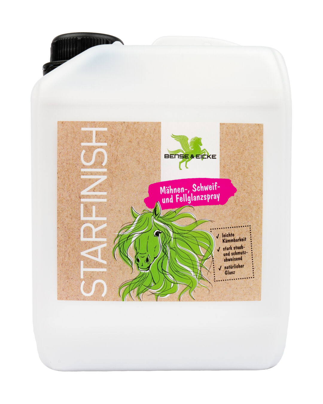 Wenn dein Pferd aussehen soll, als käme es frisch vom Shooting, greif zum Mähnen-, Schweif- und Fellglanzspray StarFinish von Bense & Eicke.