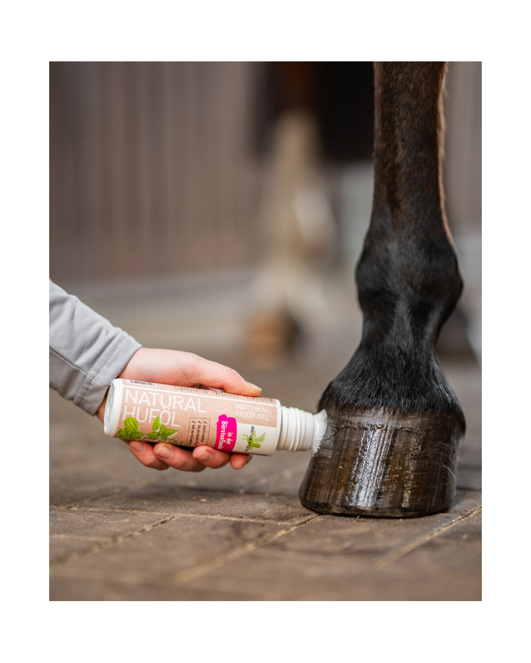 Mit der Natural Huföl Bürstenflasche von Bense & Eicke bekommst du eine natürliche Rundum-Pflege, die direkt von Hufschmieden mitentwickelt wurde.