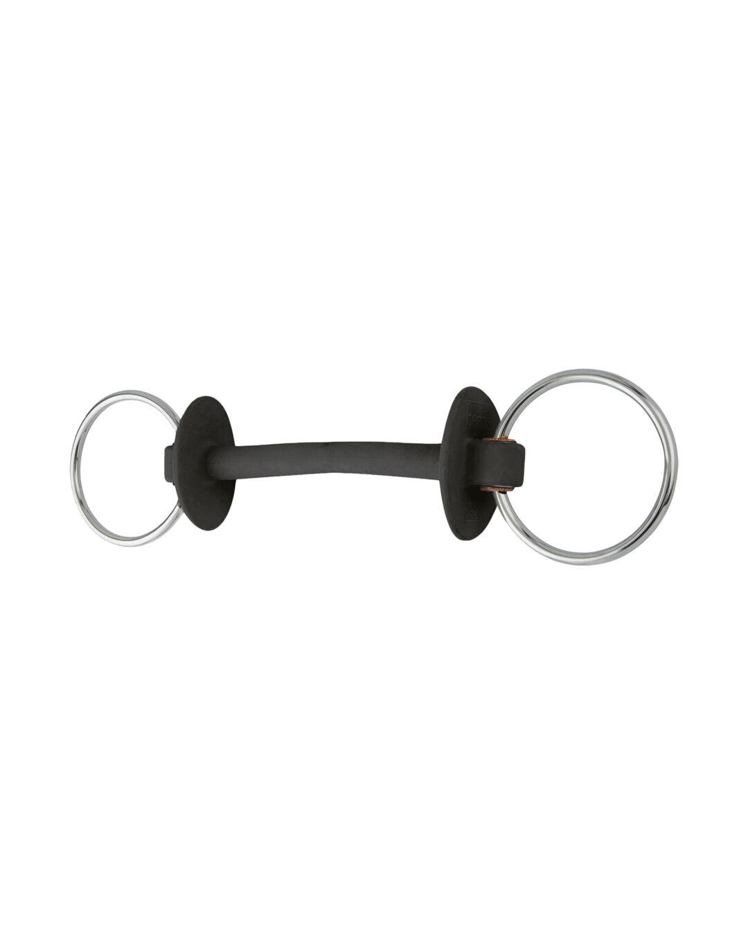 Das anatomisch korrekt geformte und extrem weiche Mundstück verteilt den Druck gleichmäßig auf Zunge und Laden. Dank der integrierten, ovalen Gebissscheiben und dem sorgsam modellierten Übergang zum Mittelstück wird ein Einklemmen der Lefzen verhindert und das Gebiss erhält zusätzlich seitlich einen besonders guten Halt.