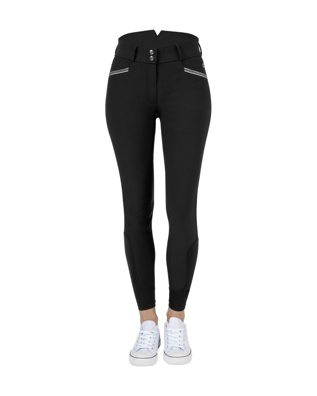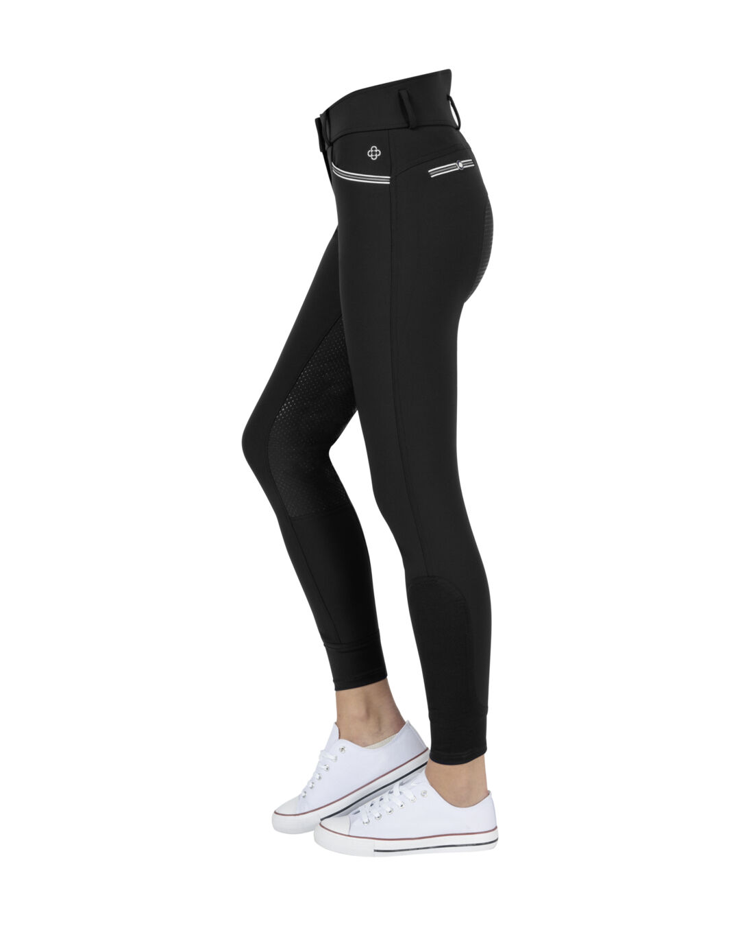 Diese Vollbesatzgrip-Reithose kommt mit einem neuen und bequemen Hochbund und bietet dir damit noch mehr Komfort. Das leichte und hochelastische Material der Reithose sorgt für eine schmeichelnde Passform, während der praktische Grip-Besatz dir einen festen Halt im Sattel garantiert. Optisch überzeugt die Damen-Reithose mit modischen Details, wie die kontrastfarbenen Enden an den Hosentaschen. Ein schöner Rücken kann auch entzücken: Der Hochbund ist am Rücken elegant geformt und hält dein Oberteil, wenn du es hineinsteckst, gut in der Hose.