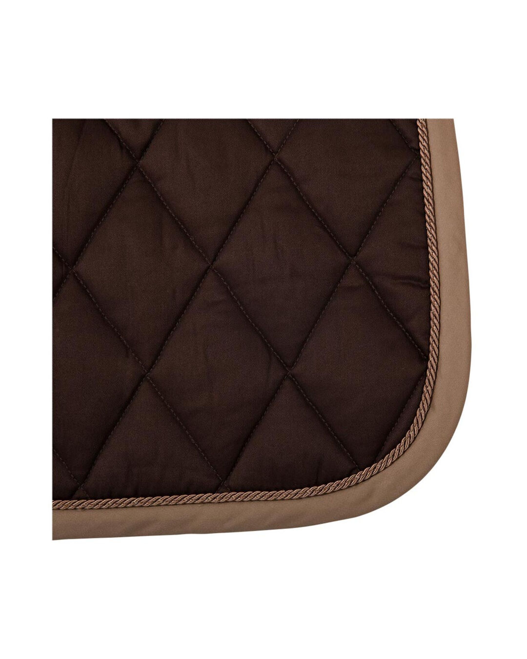 Die Schabracke ist, je nach Farbwahl, mit einer oder zwei Zierkordeln ausgestattet und verfügt über eine praktische Gurtstrupfenbefestigung mit Klettverschluss. Für eine genaue Auswahl empfehlen wir, das Bild der gewünschten Farboption zu überprüfen.