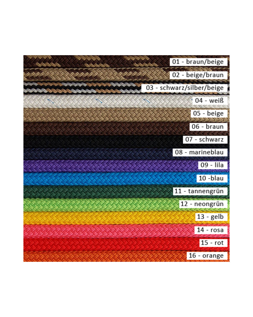 • Spezielle, schwere Polyester-Seilqualität (13 mm stark)