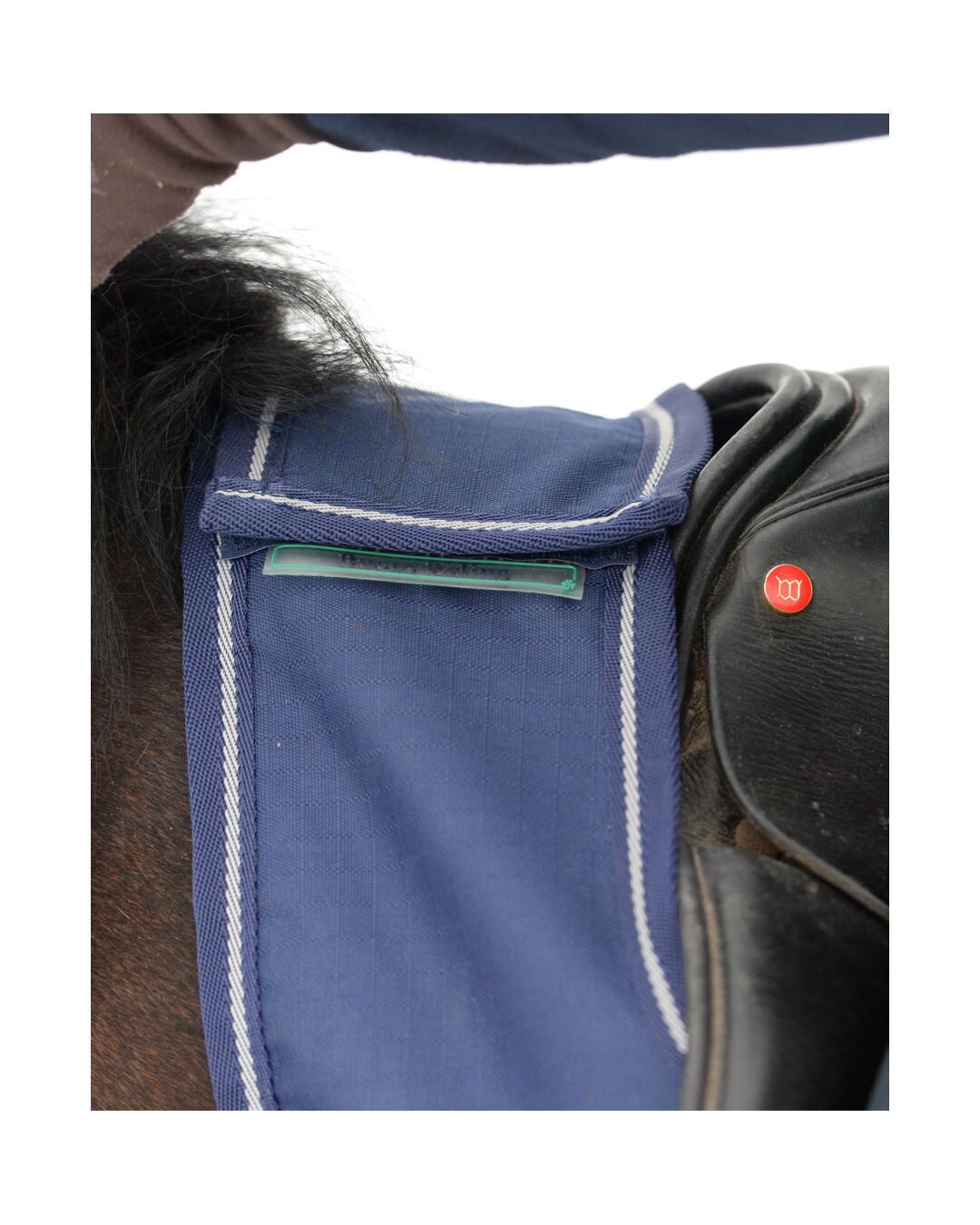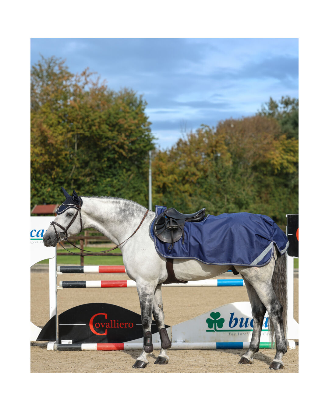 Dank des Klett-Befestigungssystems lässt sich die Decke einfach handhaben und schnell anbringen. Du kannst die Decke entweder unter den Sattelblättern oder darüber befestigen. Die reflektierenden Streifen an der Rückseite und am Schweiflatz sorgen zudem für eine verbesserte Sichtbarkeit und Sicherheit in der Dunkelheit.