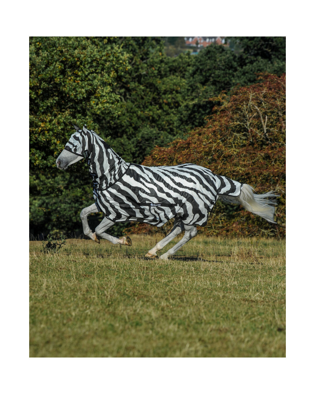 Diese Maske ist speziell dafür entworfen, die empfindlichen Augen und den Kopfbereich deines Pferdes vor lästigen Insekten zu schützen. Verfügbar in den ansprechenden Farben Hellblau oder in einer markanten Zebra-Optik, bietet sie nicht nur Schutz, sondern auch Stil. Der Zebra-Faktor, wissenschaftlich belegt, wirkt besonders abschreckend auf Fliegen, was diese Maske zu einem Must-have in deinem Stall macht.