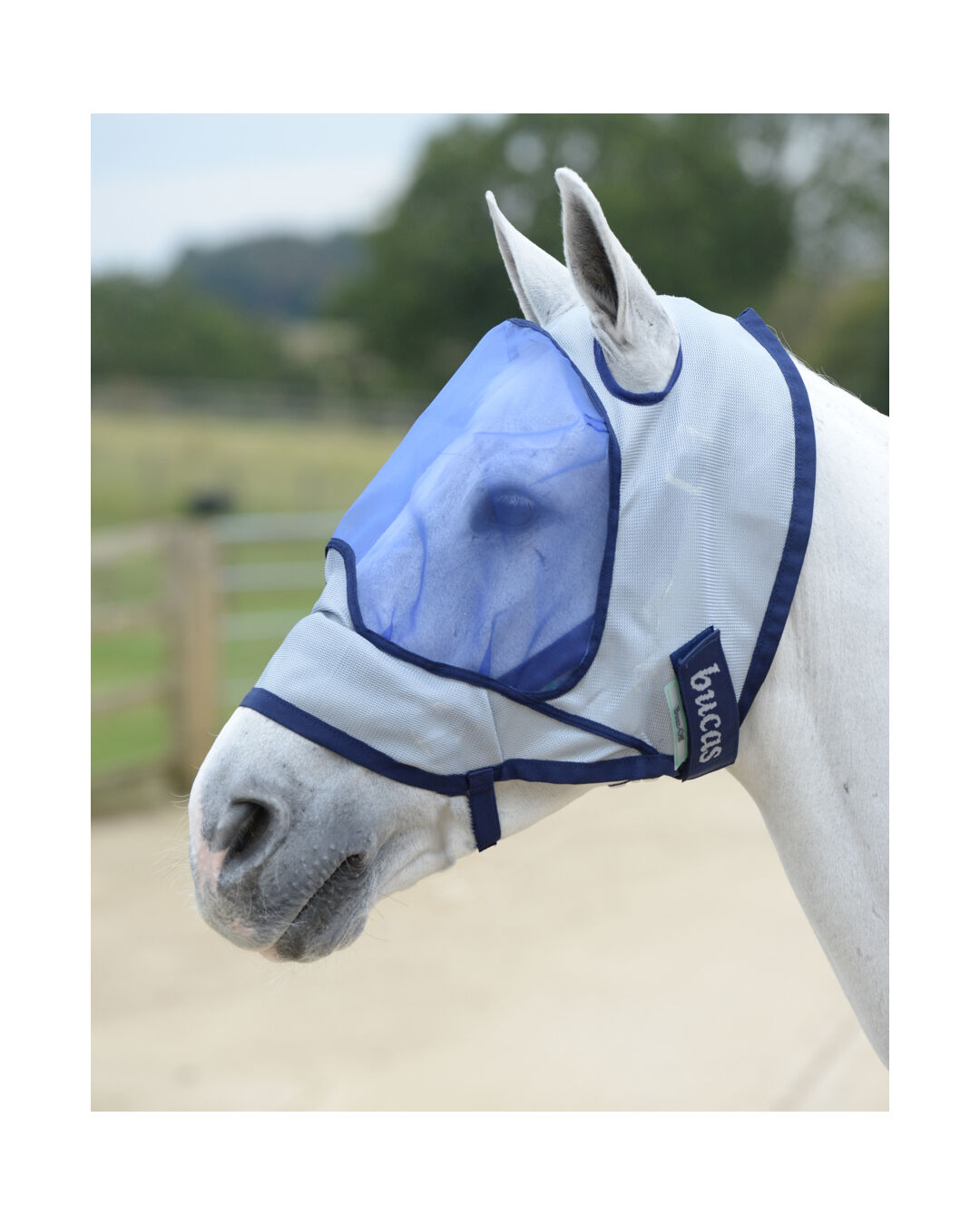 Wenn du dein Pferd vor Fliegen und Sonnenstrahlen schützen möchtest, ist die Fliegenmaske Buzz Off Deluxe von Bucas die perfekte Wahl.
