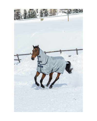 Gefertigt aus robustem ballistischem Nylon, reflektiert es Sonnenstrahlen und speichert Körperwärme, während das seidenweiche Polyester-Innenfutter Scheuerstellen verhindert. Dank seiner wasser- und winddichten Eigenschaften sowie der antibakteriellen und atmungsaktiven Materialien bleibt dein Pferd stets trocken und komfortabel. Der innovative Stay-Dry Zwischenschicht sorgt für zusätzliche Atmungsaktivität.