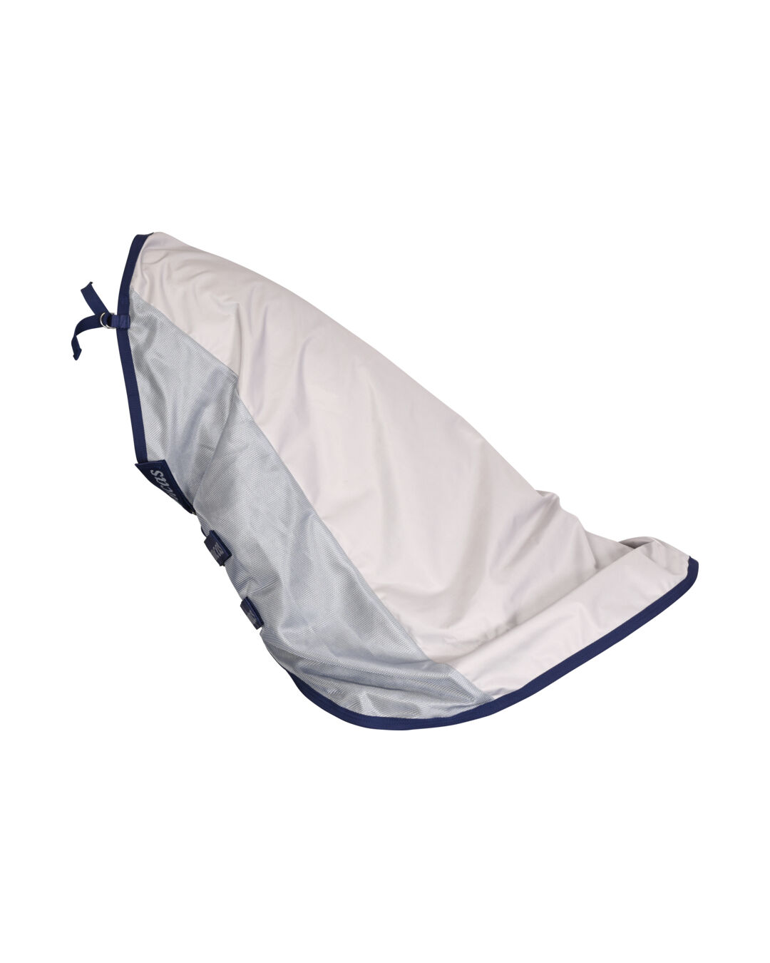 Der obere Teil der Decke ist wasserdicht und atmungsaktiv, während der untere Teil aus dem bewährten Buzz-Off-Material besteht. Diese Kombination macht die Buzz-Off Rain & Neck zu einer extrem leichten, atmungsaktiven, UV-schützenden und wasserdichten Decke.