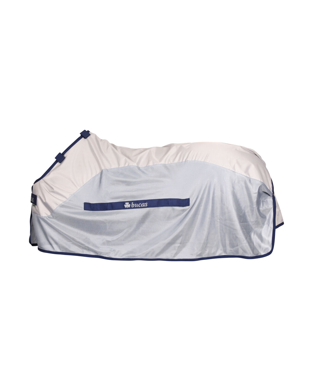 Wenn du dein Pferd an regnerischen Sommertagen schützen möchtest, ist die Outdoor- & Fliegendecke Buzz-Off Rain & Neck von Bucas optimal geeignet.