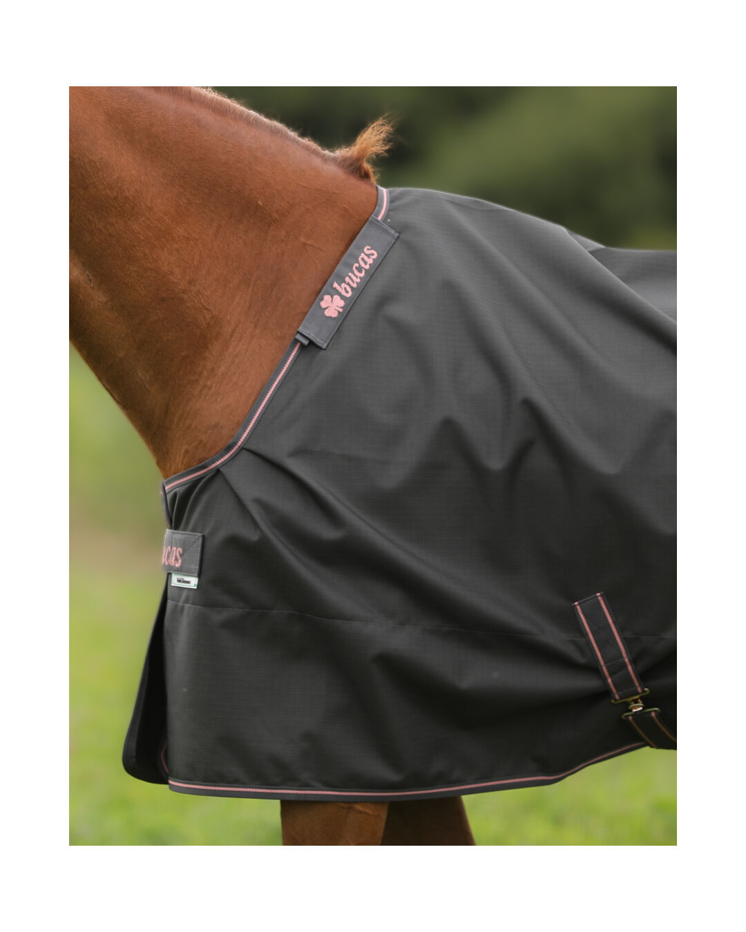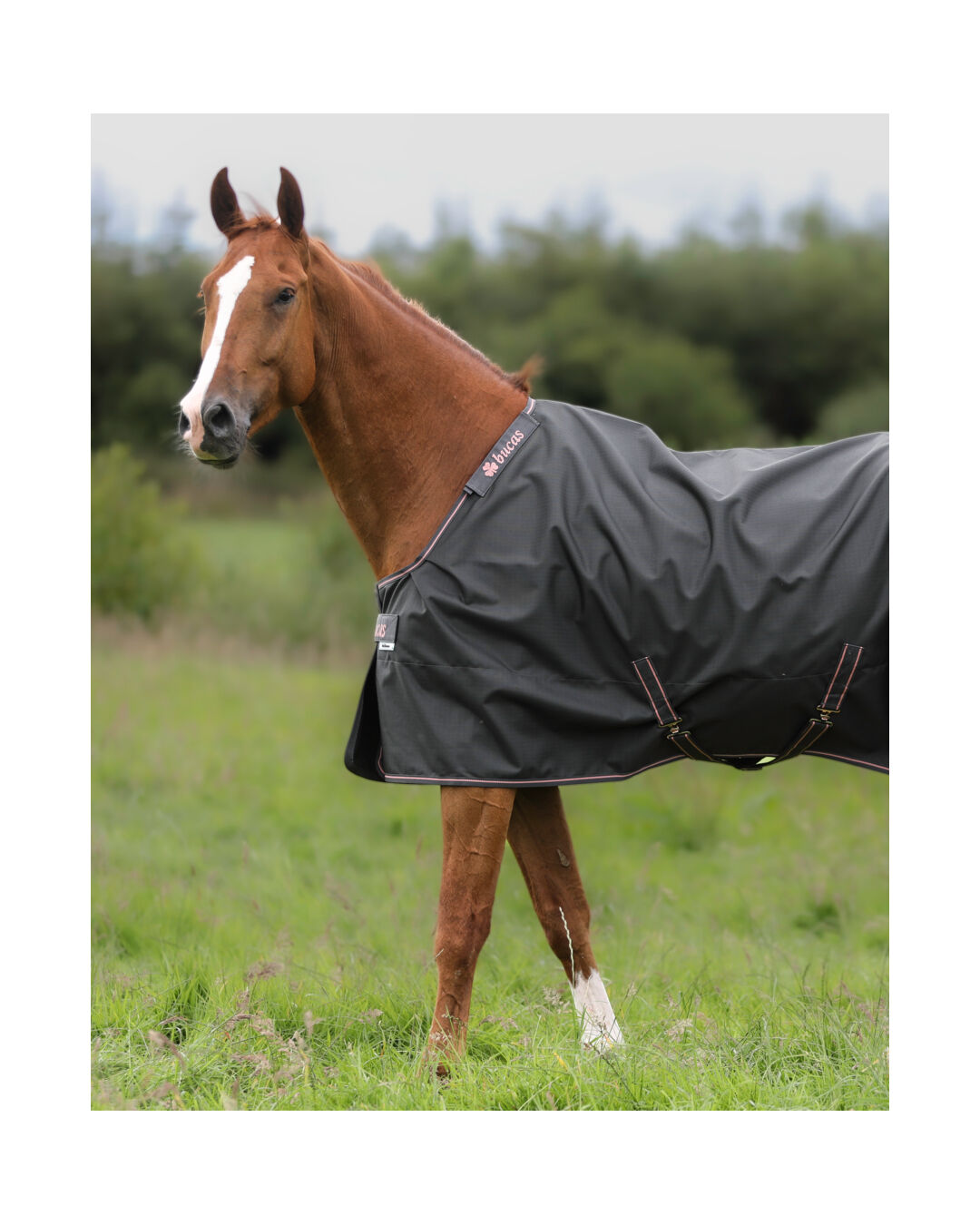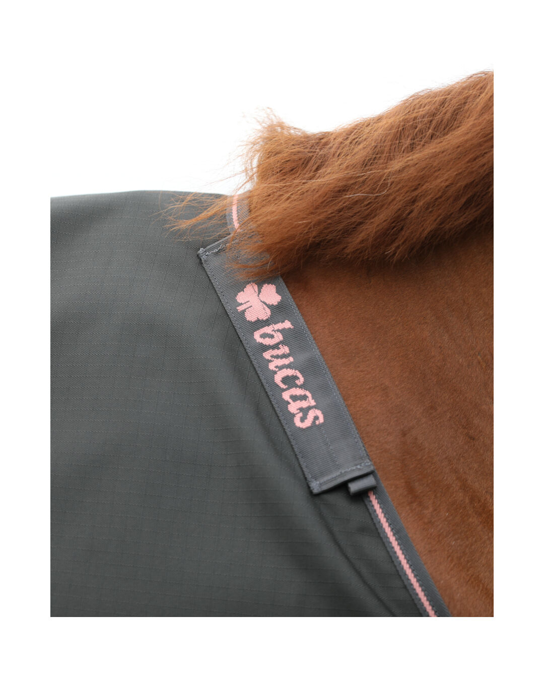 Die exklusive Farbe anthrazit-rosé macht diese Decke optisch zu einem echten Hingucker. Mit ihrem robusten Ripstop-Außenmaterial aus 1200 Denier ist die Decke besonders strapazierfähig und schützt zuverlässig vor Regen und Wind. Gleichzeitig sorgt die atmungsaktive Beschichtung dafür, dass dein Pferd nicht überhitzt. Die wasserdichte und atmungsaktive Decke kommt ohne Füllung, was sie ideal für wechselhaftes Wetter oder als reinen Regenschutz macht.