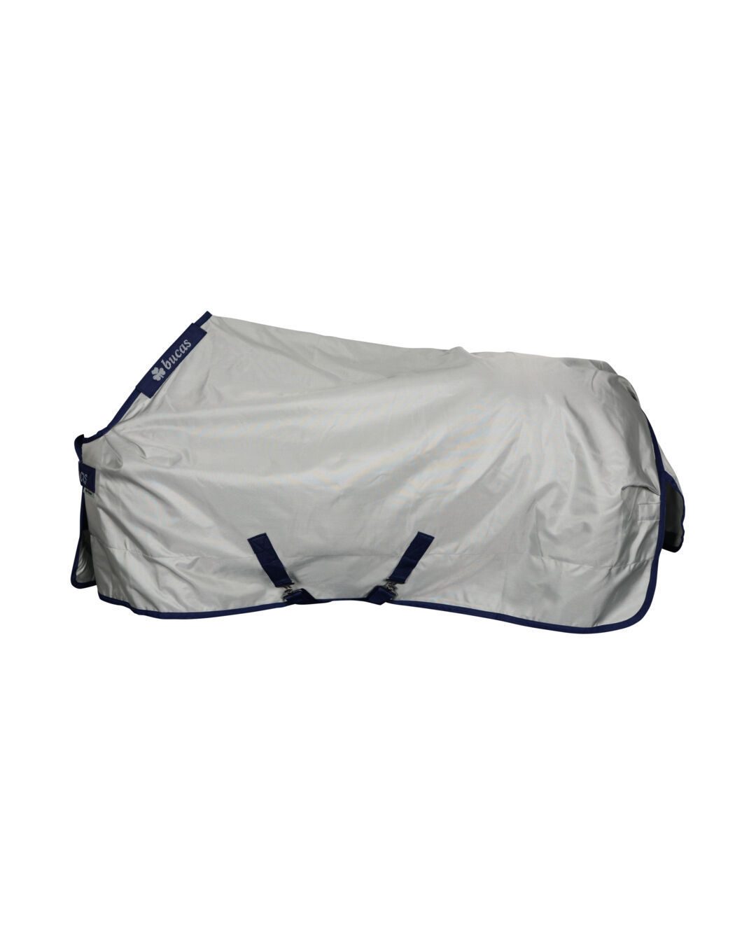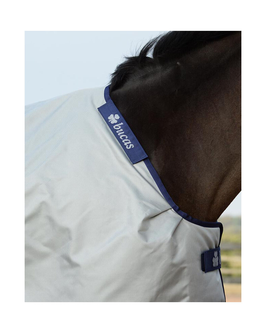 Außerdem ist sie mit einer Wärme reflektierenden Aluminium-Innenbeschichtung und einer sonnenreflektierenden Silberaußenseite ausgestattet, die den Temperaturbereich erweitert, in dem die Decke eingesetzt werden kann. Die Decke kann aufgrund des Stay-Dry Innenfleece wie eine Abschwitzdecke auf das nasse Pferd aufgelegt werden. Der optimale Bereich für diese Decke liegt laut Bucas bei etwa -10 °C bis +16 °C. Dieser ungefähre Richtwert ist eine Empfehlung, die von Faktoren wie Sonne, Luftfeuchtigkeit, Wind und Aktivität deines Pferdes beeinflusst werden kann.