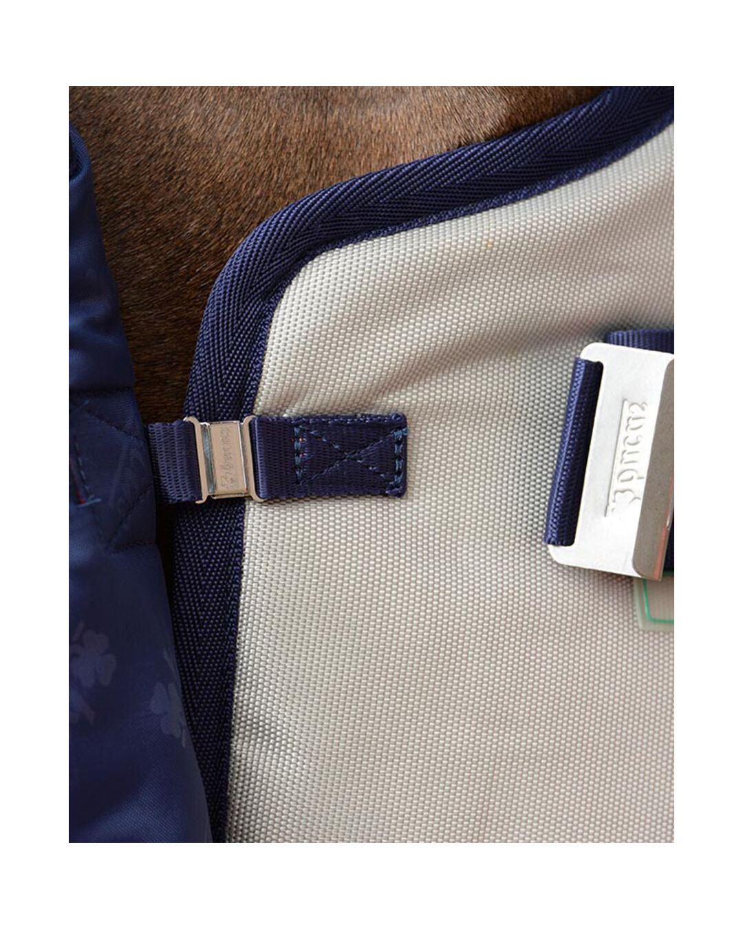Sie bietet eine unschlagbare Kombination aus Stärke, Haltbarkeit und Qualität und sorgt für optimalen Komfort und Schutz deines Pferdes bei unterschiedlichsten Wetterbedingungen. Mit ihrer ballistischen Nylon-Außenschicht ist sie wasserdicht sowie atmungsaktiv.