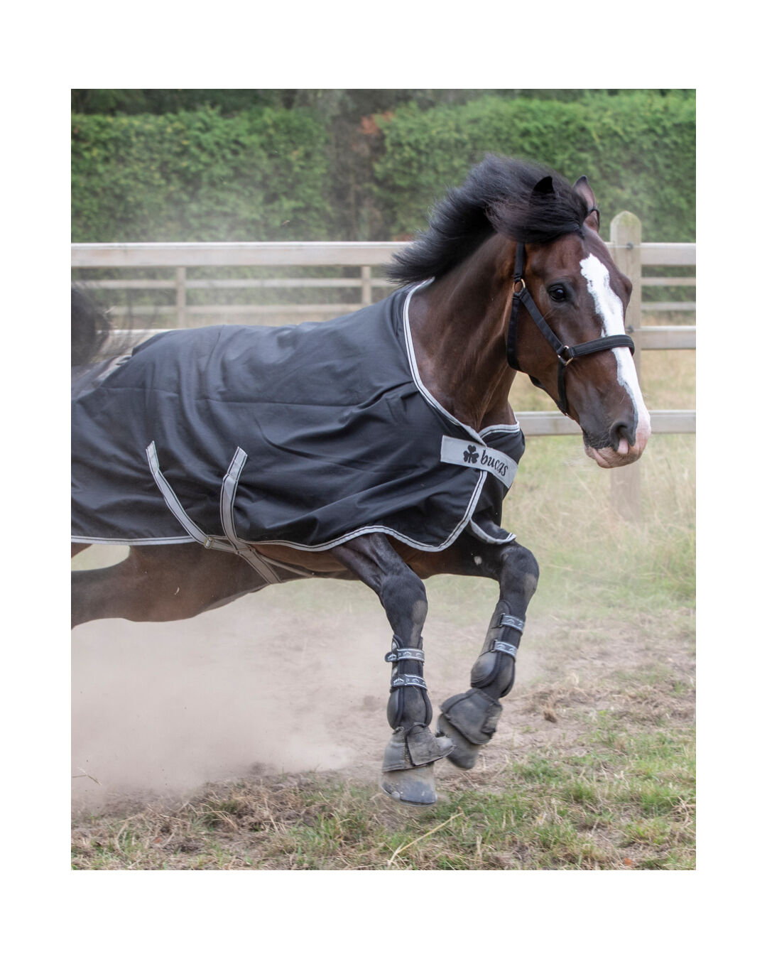 Das robuste Ripstop-Außenmaterial der Outdoordecke Anniversary Turnout von Bucas schützt dein Pferd zuverlässig vor Wind und Wetter, während das „Silk-feel“-Futter angenehm glatt auf der Haut liegt und das Fell schont.