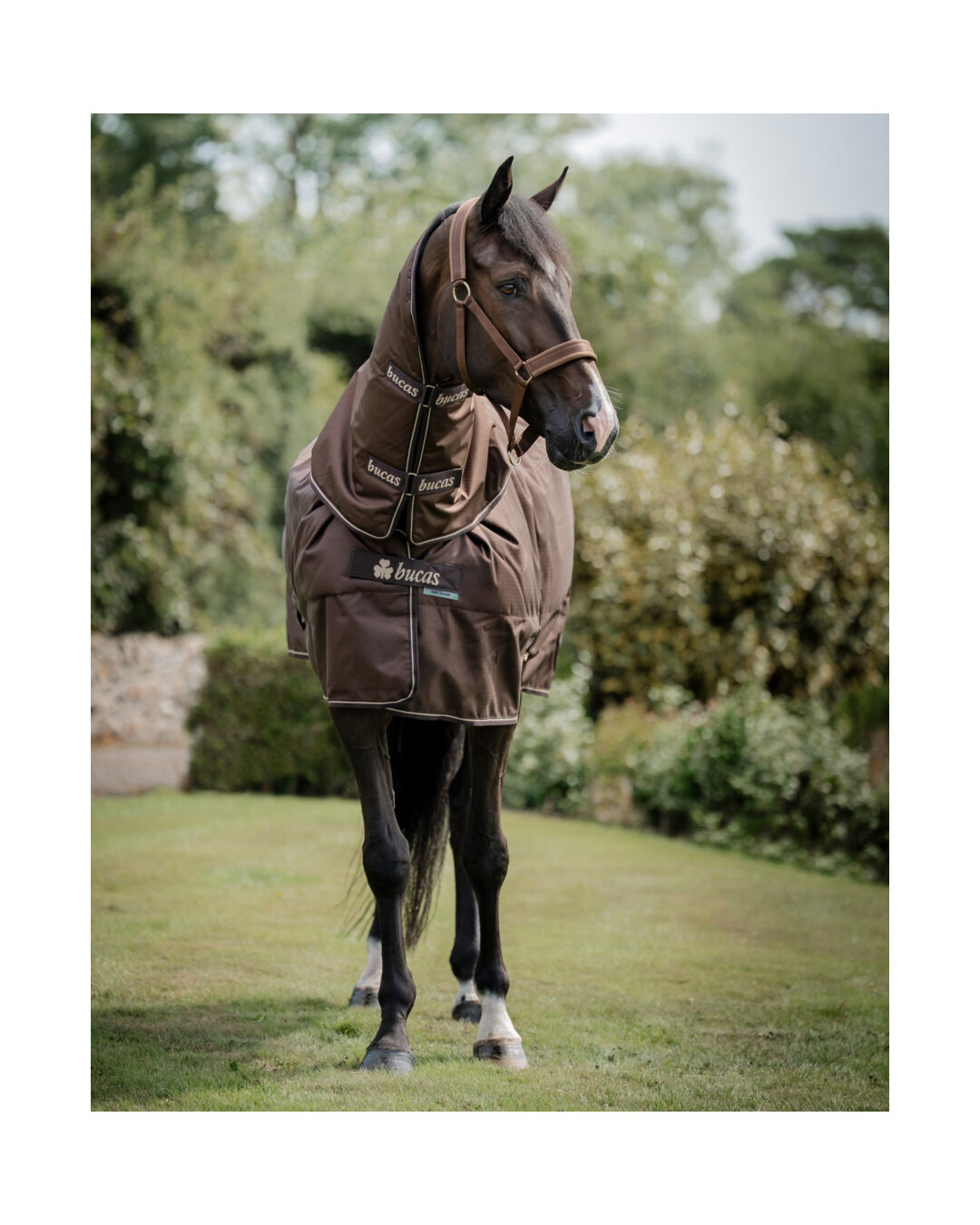 Die Winterdecke Irish Turnout 150 g + Neck von Bucas ist dein perfekter Begleiter für die kalte Jahreszeit.