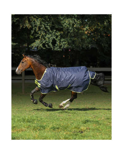 Mit einer Isolierung von 200 g bietet die Decke ausreichend Wärme für kühlere Tage. Für zusätzlichen Schutz ist die Decke mit einem abnehmbaren 50 g Combi Neck ausgestattet, das den Hals deines Pferdes ebenfalls warm und trocken hält.