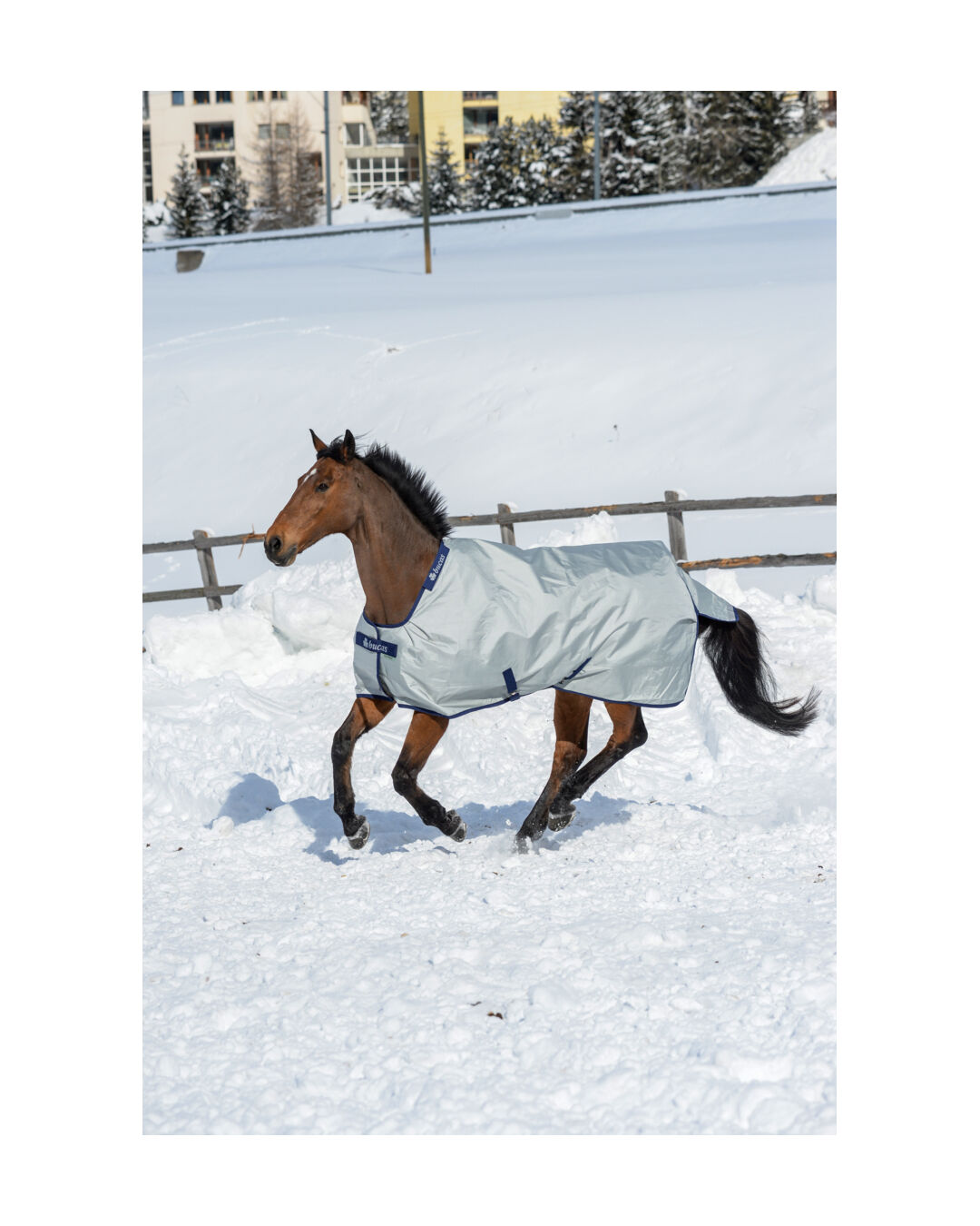 Optimal für den Einsatz im Winter, ist die Decke mit reflektierenden Streifen an der Brust und dem Schweiflatz ausgestattet. Die Schulterabnäher und das Click'n Go mit Snap-Lock-Verschlusssystem an der Vorderseite sorgen dafür, dass die Power Turnout immer perfekt sitzt. Das antibakterielle Stay-dry-Innenfutter sorgt dafür, dass die Decke auf deinem nassen Pferd genauso aufgelegt werden kann, wie eine Abschwitzdecke. Sie trocknet dein Pferd schnell und kann anbehalten werden, wodurch ein zusätzlicher Deckenwechsel vermieden wird.