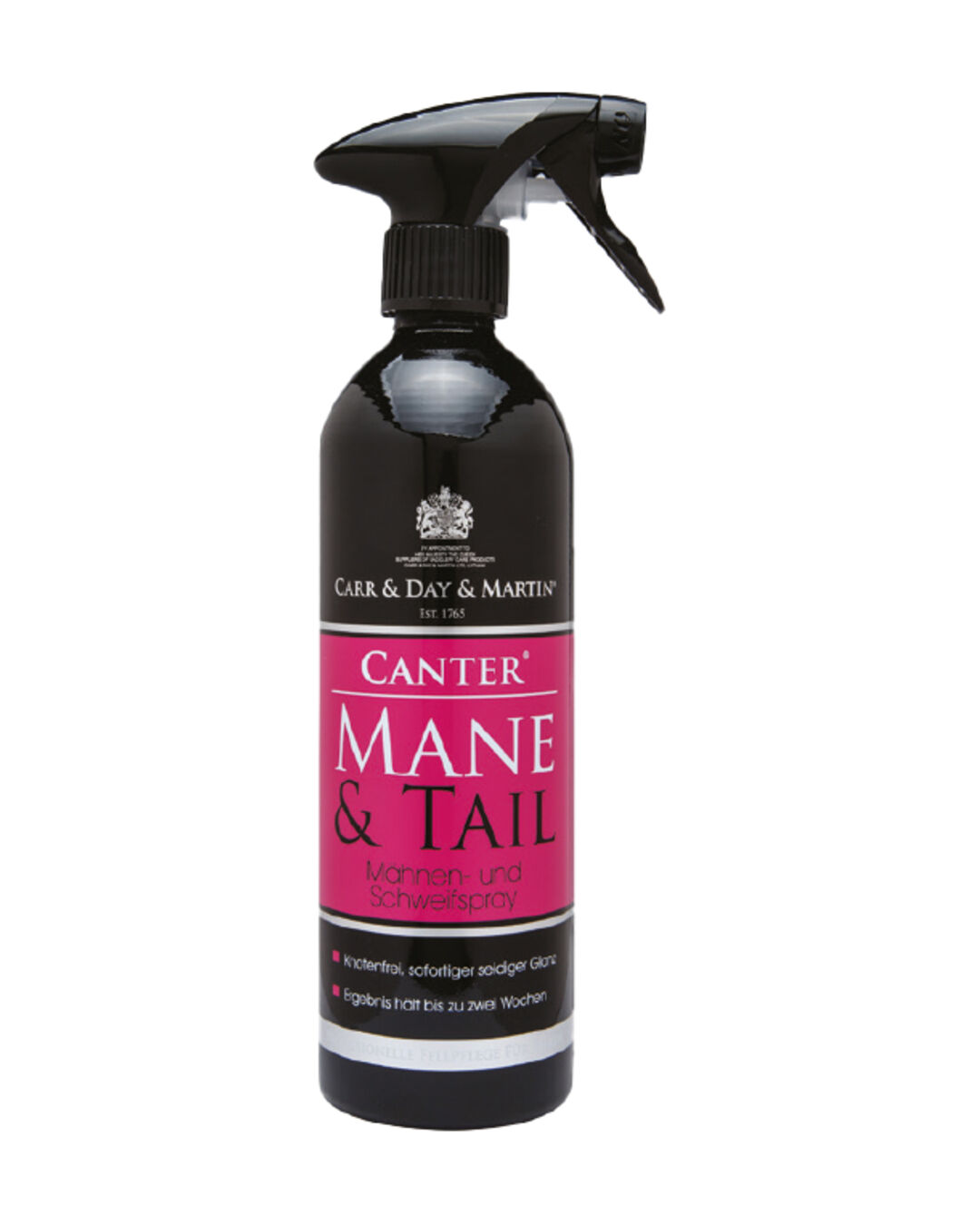 Das Schweif- & Mähnenspray Canter Mane & Tail von Carr & Day & Martin ist genau das, was du brauchst, um Mähne und Schweif deines Pferdes glatt, verknotungsfrei und luxuriös weich zu halten.