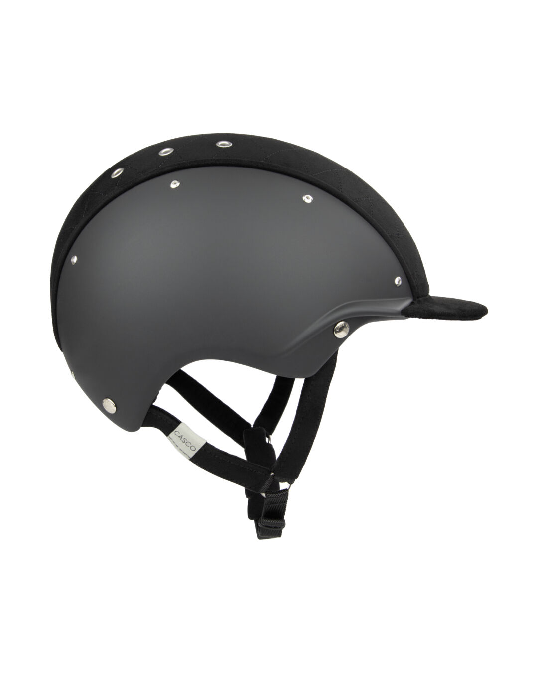 Der Apart Embellis von Casco beeindruckt mit seiner eleganten Optik und dem mittig abgesteppten Design, das für einen stilvollen Auftritt sorgt. Die Kombination aus klassischer Form und modernen Materialien macht diesen Reithelm zu einem besonderen Blickfang.