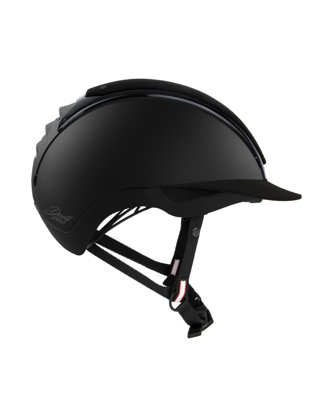 Der Reithelm DUELL One von CASCO ist eine Sonderedition, die durch exquisite Details und hochwertige Materialien wie Nubukleder, spezielle Farben und Muster besticht.