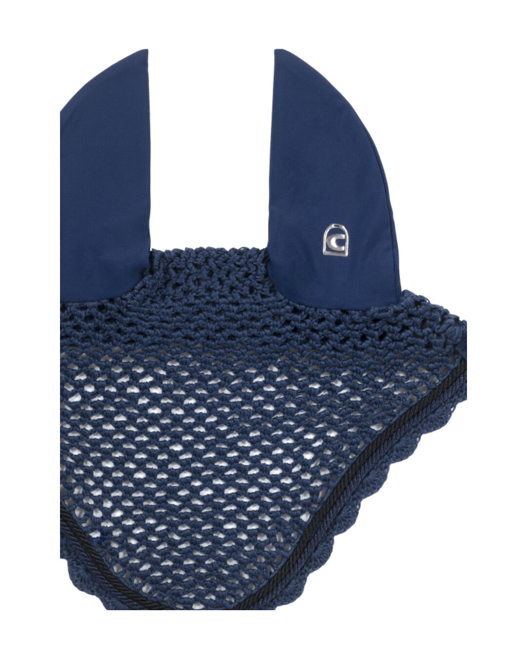 Diese Fliegenohren sind aus schnell trocknendem, hautfreundlichem Funktionsjersey im Ohrenbereich gefertigt, das für maximalen Komfort sorgt. Das linke Ohr ist zudem mit dem markanten Cavallo Steigbügellogo bedruckt, was einen einzigartigen Look verleiht. Der Kopfbereich ist in einer attraktiven Häkeloptik gestaltet und wird von zwei kleinen, kontrastfarbigen Kordeln eingerahmt, die das Gesamtbild stilvoll abrunden. Diese Fliegenohren sind nicht nur ein modisches Accessoire, sondern bieten auch effektiven Schutz gegen Fliegen und Insekten.