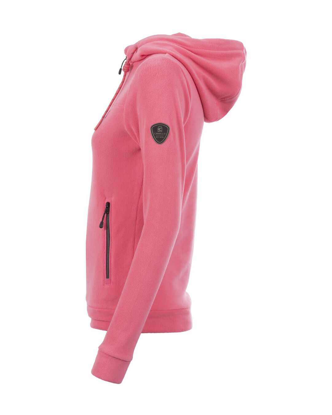 Gefertigt aus weichem Microfleece bietet er dir Wärme und Komfort, ohne dabei schwer zu wirken. Der Half-Zip mit kurzem Reißverschluss am Kragen macht den Pullover vielseitig einsetzbar – du entscheidest, ob du ihn offen oder geschlossen tragen willst. Die Kapuze ist nicht nur praktisch, sondern kann am Rücken per Druckknopf fixiert werden, sodass sie beim Reiten nicht stört.