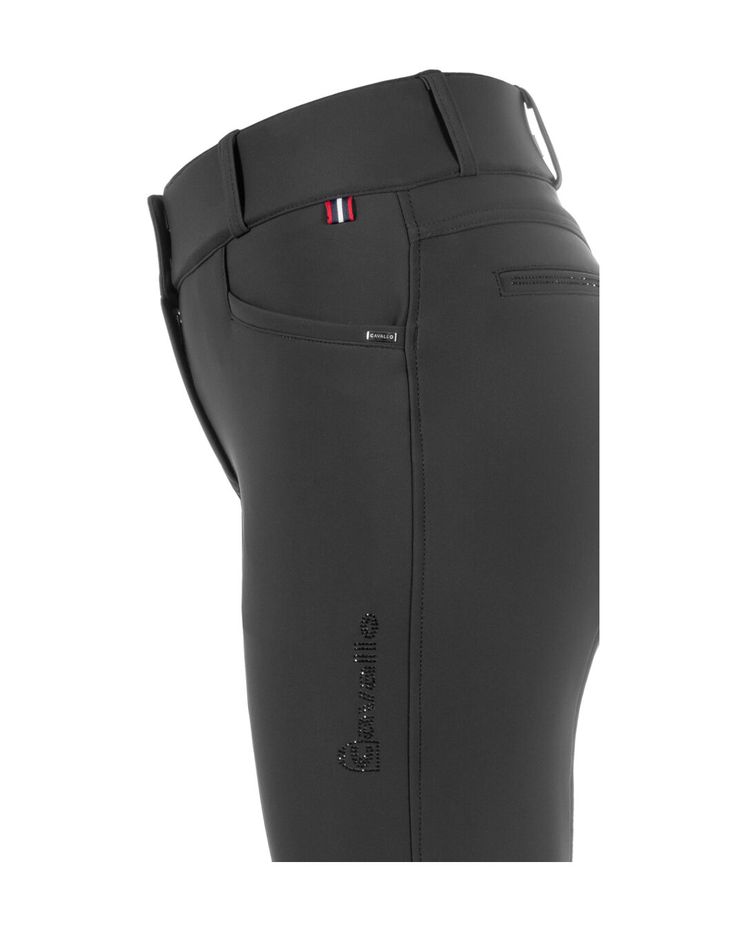 Ein echtes Highlight: das glitzernde Cavallo-Logo aus Kristallen am linken Oberschenkel – edel, aber nicht too much. Für einen einheitlichen Look sind die Taschenbeutel immer schwarz mit einem kontrastierenden Cavallo-Logo bedruckt. Und auch wichtig: Die Hose ist vorwiegend blickdicht.