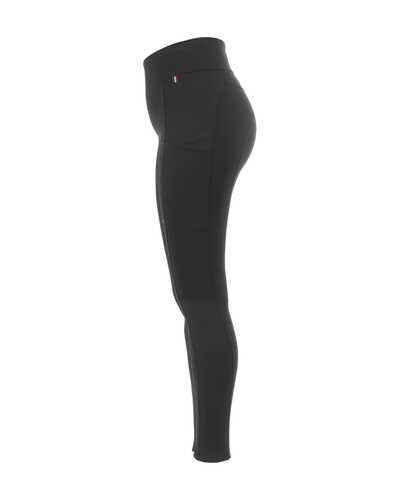 Die Kompressionsware sorgt für eine super bequeme Passform und stützt gleichzeitig angenehm beim Reiten. Der breite, ergonomisch geschnittene Highwaist-Bund sitzt sicher und bleibt auch bei viel Bewegung da, wo er soll – kein Rutschen, kein Zwicken.