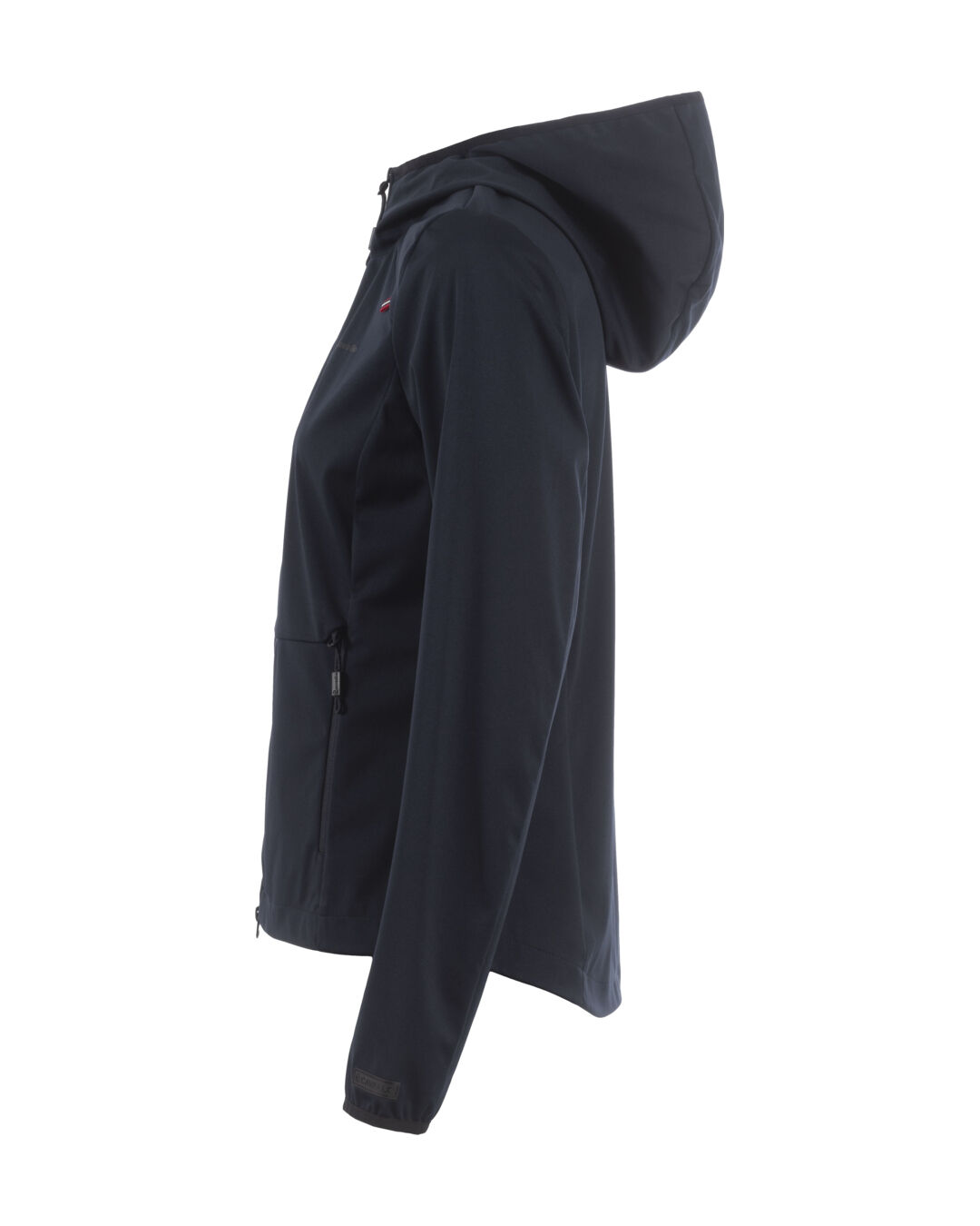 Diese bi-elastische, kurze Softshelljacke ist mit einer angeschnittenen Kapuze ausgestattet, die für zusätzlichen Schutz sorgt und bei Bedarf am Rücken mit einem Druckknopf fixiert werden kann. Der 2-Wege-Reißverschluss an der Front in Schwarz, versehen mit Anhängern, ermöglicht dir eine flexible Handhabung und passt sich deinen Bewegungen an.