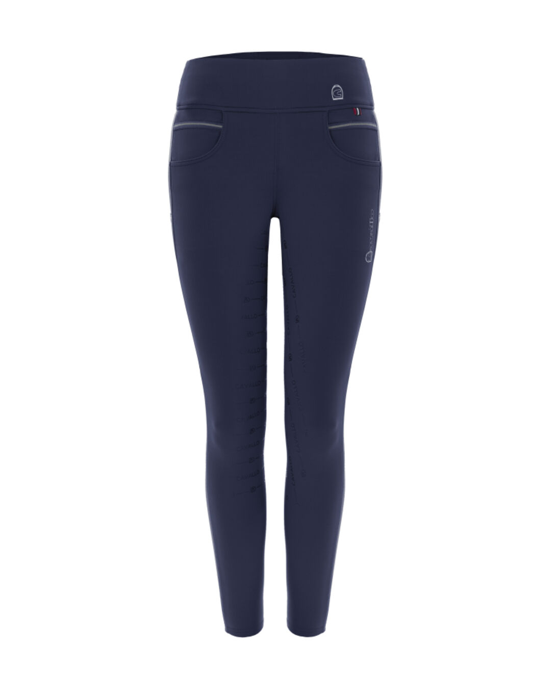 Die Eingrifftaschen vorne sorgen für einen modischen Five-Pocket Look und bieten ausreichend Platz für kleine Gegenstände wie Schlüssel oder Geldbeutel. Auf beiden Seiten des Oberschenkels befinden sich praktische Handytaschen, die das Mitführen des Smartphones während des Reitens erleichtern.