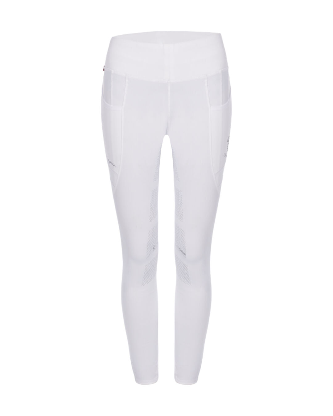 Dank des CAVAGRIP Silikon-Vollbesatzes hast du in jeder Situation sicheren Halt im Sattel. Besonders praktisch: Die Leggings kommt mit zwei seitlichen Handytaschen, sodass du dein Smartphone immer griffbereit hast. Ein kleines, aber feines Detail ist das Cavallo Emblem auf der linken Tasche – stylisch und funktional zugleich.