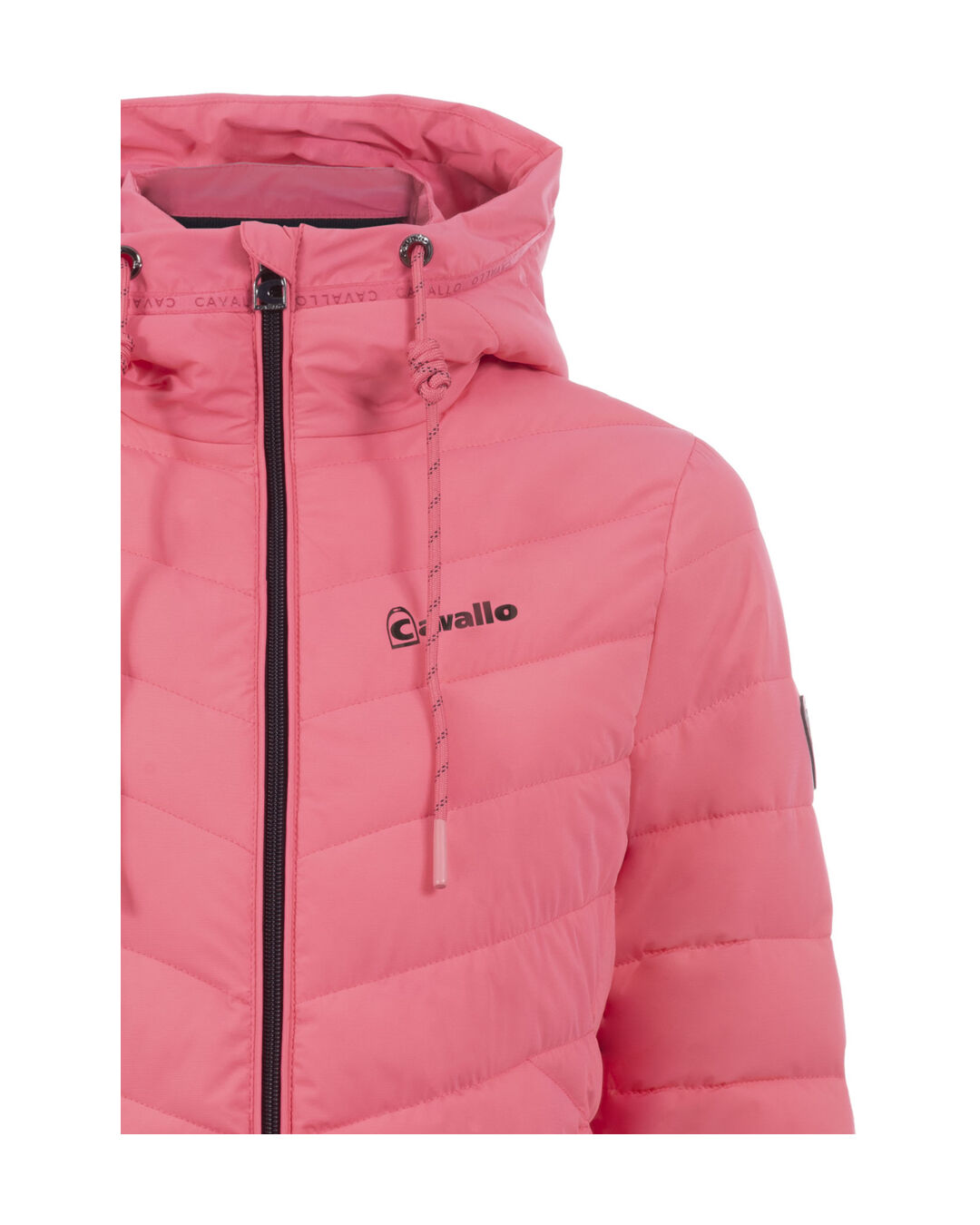 Die Kapuze ist mit tonigen Kordelzügen und raffinierten Details versehen und kann mit einem Druckknopf am Rücken fixiert werden. Elastische Rippbündchen an den Ärmeln verhindern das Eindringen kalter Luft, während praktische Taschen mit verdecktem Reißverschluss genügend Stauraum bieten. Eine Innentasche mit Handyfach sorgt für zusätzlichen Komfort. Logo-Details wie der Cavallo-Steigbügelprint auf der Kapuze und das Cavallo-Logo am Ärmel runden den Look ab.