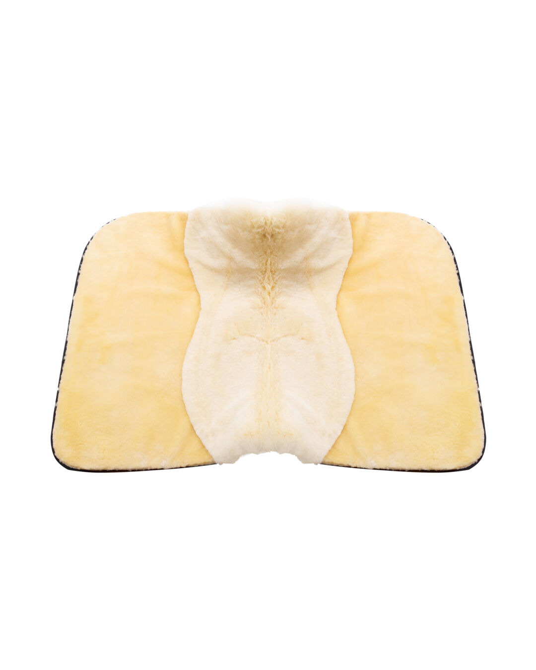 Diese Schabracke ist komplett mit echtem Lammfell ausgestattet, wobei im Sitzbereich eine Wollhöhe von 30 mm und an den Blättern von 15 mm verwendet wird. Das im Blattbereich geschorene Lammfell sorgt für eine erhöhte Nähe zum Pferd, was eine bessere Kommunikation und ein feineres Reitgefühl ermöglicht.