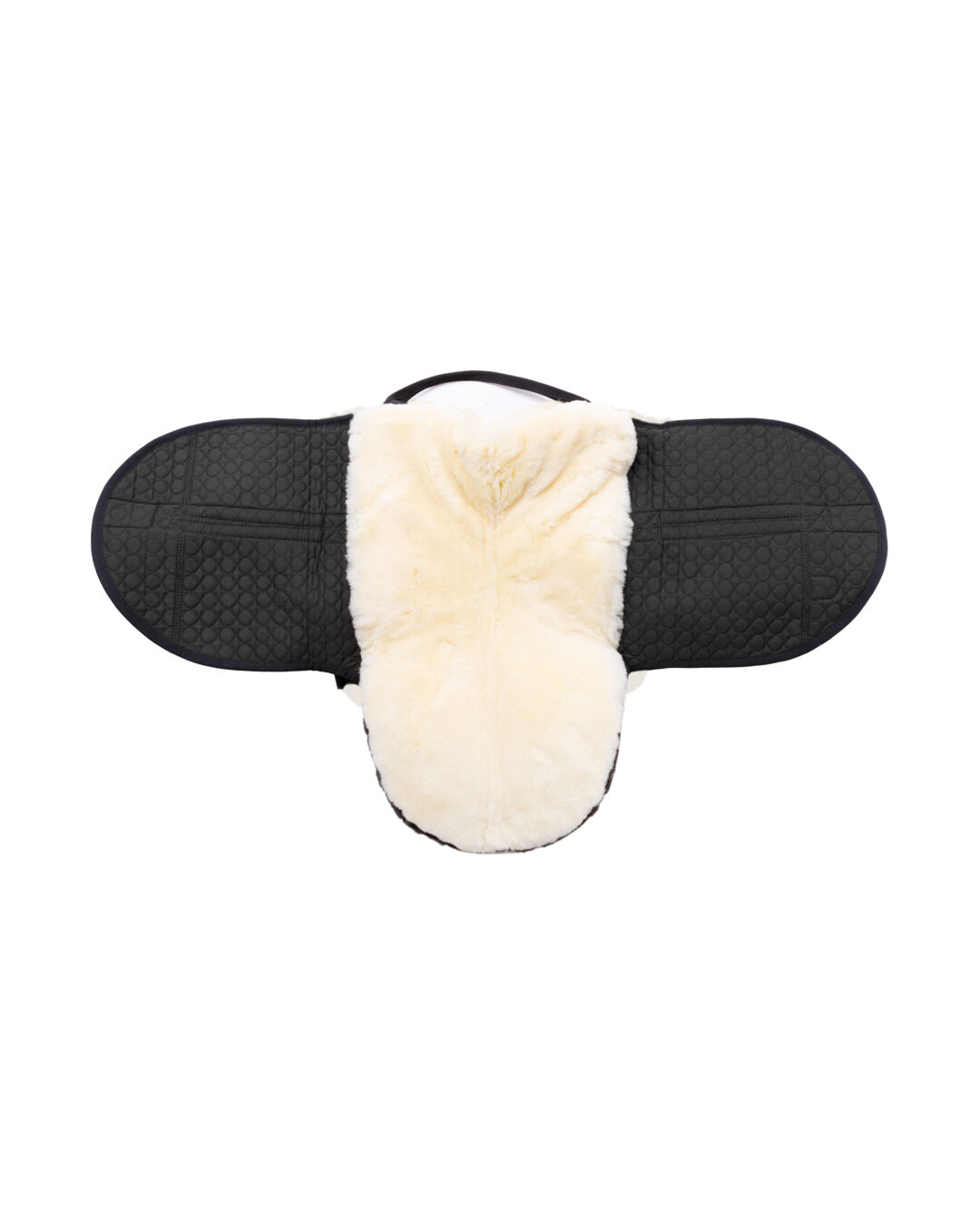 Dieser Sattel ist speziell dafür entwickelt, den Pferderücken zu schonen, während er gleichzeitig den Sitzkomfort durch herausnehmbare Polster links und rechts vom Wirbelkanal erhöht. Obwohl er üblicherweise ohne Steigbügel geritten wird, bietet der Sattel D-Ringe unter dem Lammfellsitz, an denen Steigbügelriemen für verbesserte Balance befestigt werden können.