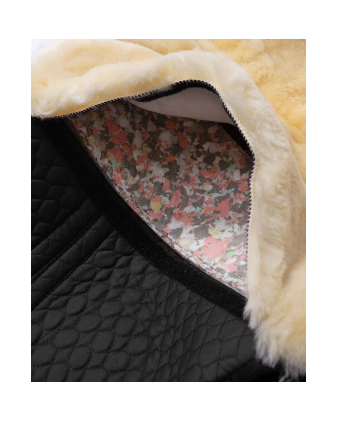 Der Fellsattel ist vollständig aus echtem Lammfell gefertigt, welches nicht nur luxuriös weich ist, sondern auch eine natürliche Polsterung bietet. Mit einer Wollhöhe von 30 mm bietet das Lammfell eine exzellente Druckverteilung, die den Rücken des Pferdes schont und den Reiterkomfort maximiert. Die Wärme- und Feuchtigkeitsregulierung des natürlichen Materials trägt weiterhin dazu bei, dass sowohl Pferd als auch Reiter auch bei längerem Gebrauch trocken und komfortabel bleiben.
