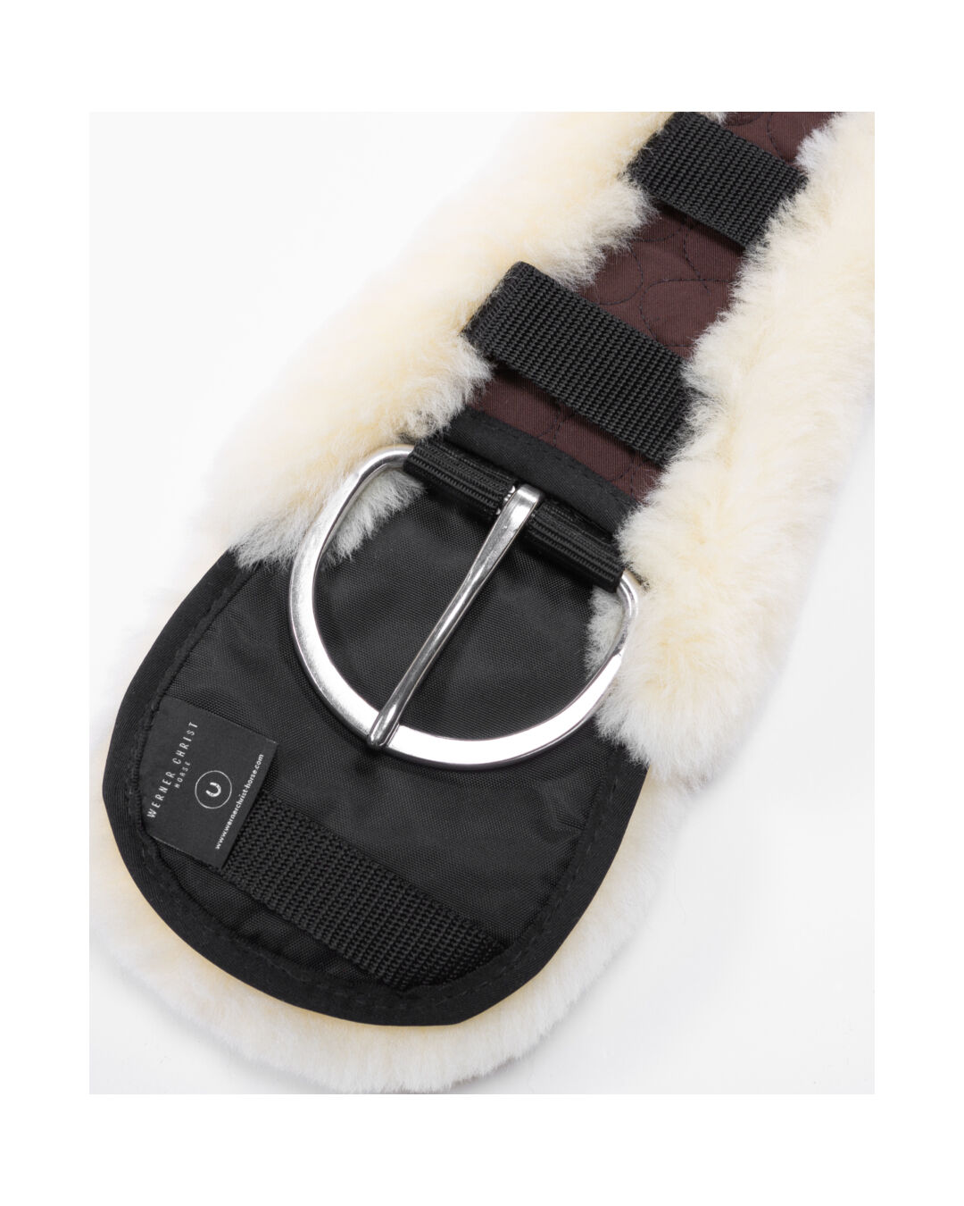Dieser Gurt zeichnet sich durch seine angenehme Polsterung aus echtem Lammfell aus, die eine Wollhöhe von etwa 30 mm hat. Dieses Material ist bekannt für seine weichen und druckmindernden Eigenschaften, die Druckstellen vermeiden und für eine gleichmäßige Verteilung des Drucks sorgen, was besonders wichtig für Pferde mit ausgeprägter Gurtlage ist.