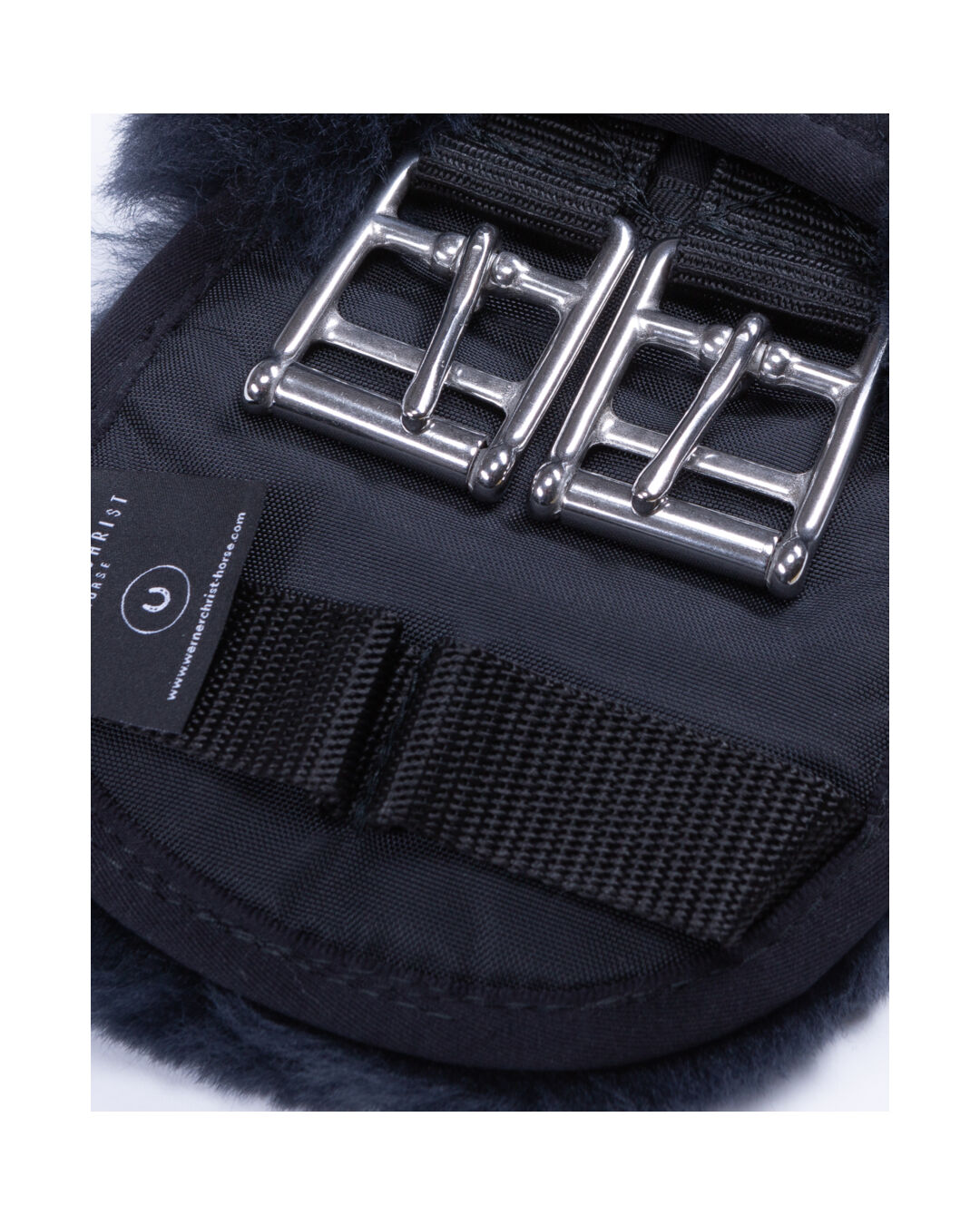 Die einzigartige Konturierung und der zurückgeschnittene Design an beiden Seiten des Gurtes garantieren eine freie Ellenbogenbewegung, was besonders wichtig für aktive Pferde ist. Die Polsterung aus echtem Lammfell mit einer Wollhöhe von ca. 30 mm sorgt für eine sanfte Druckverteilung und nimmt Feuchtigkeit effektiv auf, was den Komfort weiter erhöht.