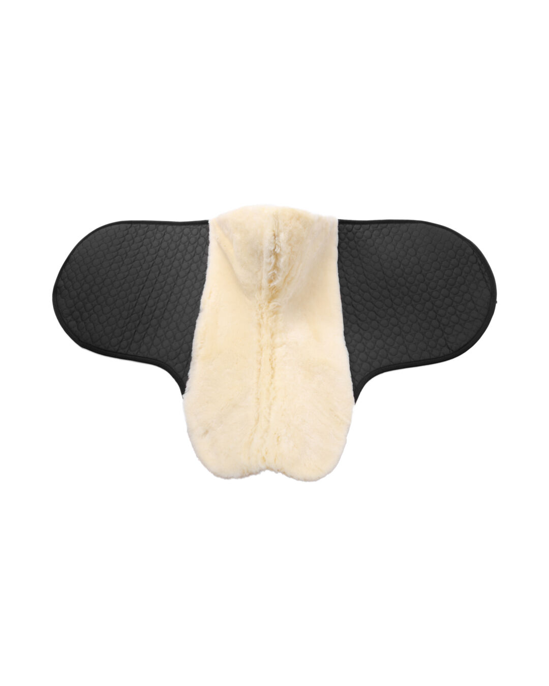 Diese Satteldecke ist nicht nur funktional, sondern auch komfortabel und ästhetisch ansprechend. Das Lammfell ist nur im Sitzbereich eingearbeitet, um optimale Polsterung zu bieten, ohne die Gesamtflexibilität des Sattels zu beeinträchtigen. Zusätzlich verfügt die Decke über eingearbeitete Einschubtaschen, die eine individuelle Anpassung der Polsterung ermöglichen und somit für jedes Pferd optimal angepasst werden kann.