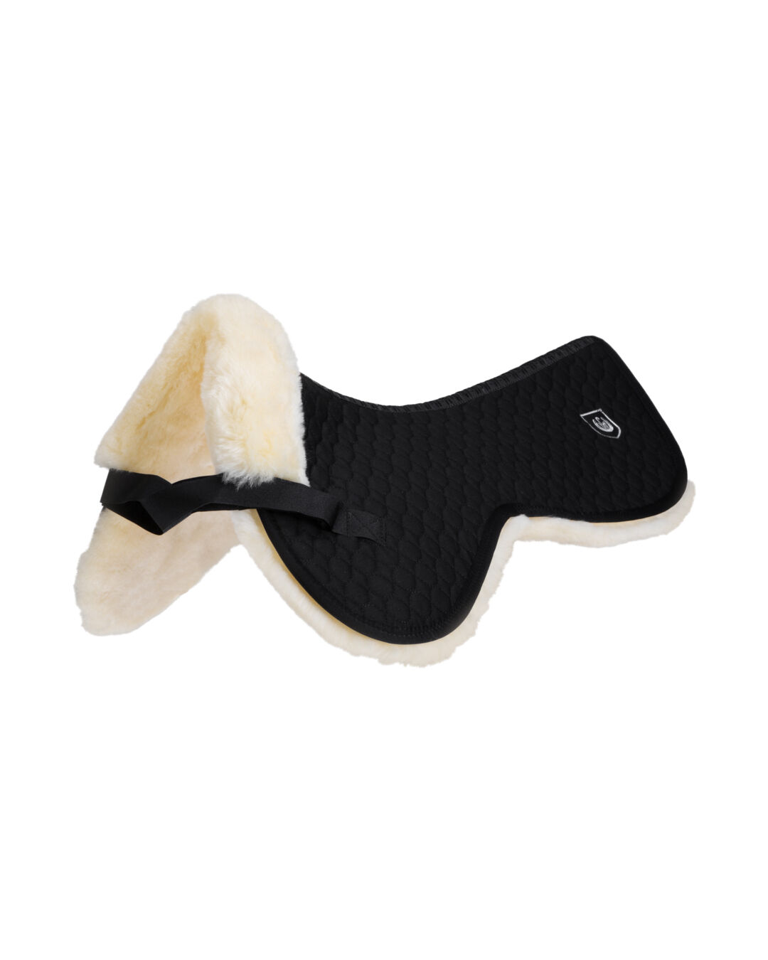 Dieses Sattelpad ist im Schulterbereich tiefer geschnitten, um eine bessere Anpassung und Entlastung für die Pferdeschultern zu bieten. Das ist besonders nützlich bei Pferden mit ausgeprägten Schultern oder bei der Verwendung von Sätteln mit langen Kopfeisen. Die Unterseite des Pads besteht aus hochwertig gegerbtem Lammfell mit einer Wollhöhe von etwa 30 mm, was eine exzellente Druckverteilung und Schutz bietet, während die natürlichen Eigenschaften des Lammfells die Hautgesundheit fördern, indem es Feuchtigkeit aufnimmt und eine natürliche Luftzirkulation ermöglicht.