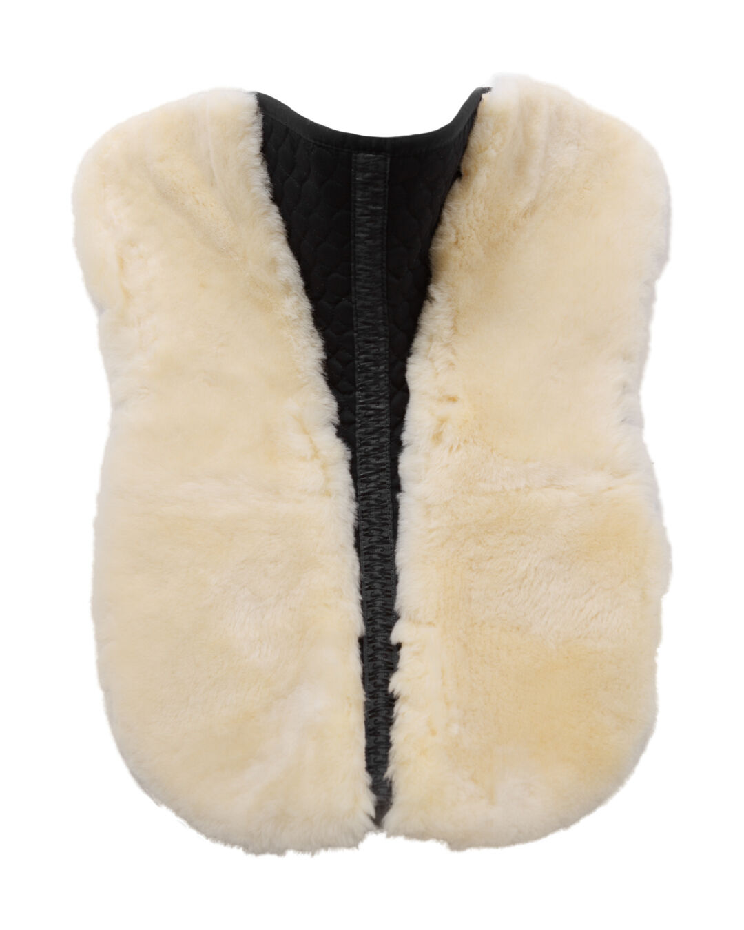 Die innovative Rückenlinie dieses Sattelpads passt sich perfekt an Pferde mit hohem Widerrist an, während der Bereich des Wirbelkanals frei von Lammfell gehalten wird, um Druckentlastung und ausreichende Luftzirkulation sicherzustellen. Die Unterseite des Pads ist aus echtem Lammfell gefertigt, das eine Wollhöhe von ca. 30 mm hat und somit hervorragenden Komfort und Schutz bietet.
