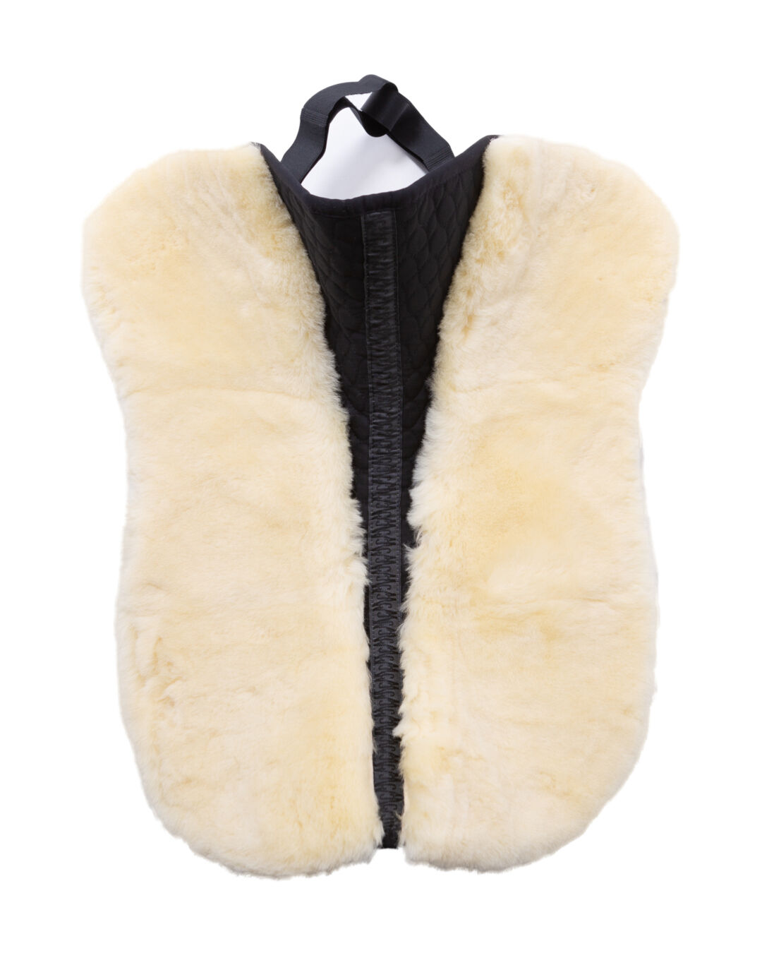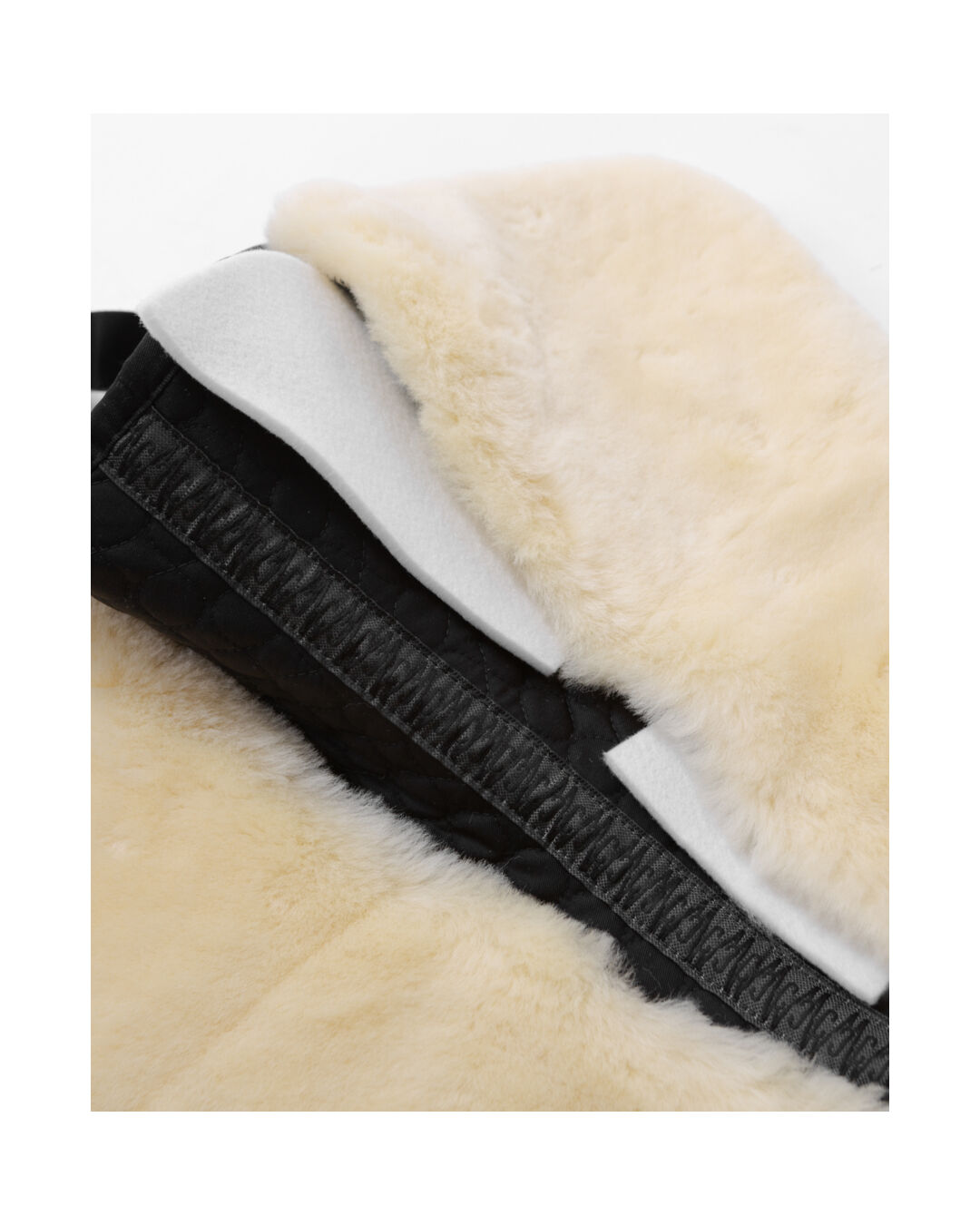 Dieses Sattelpad zeichnet sich durch eine spezielle Rückenlinie aus, die besonders für Pferde mit hohem Widerrist geeignet ist. Die besondere Gestaltung sorgt dafür, dass der Bereich des Wirbelkanals frei von Lammfell bleibt, was eine verbesserte Luftzirkulation ermöglicht und Druckstellen vermeidet. Die Unterseite des Pads besteht aus echtem Lammfell mit einer Wollhöhe von ca. 30 mm, was außerordentlichen Komfort und Druckverteilung bietet.
