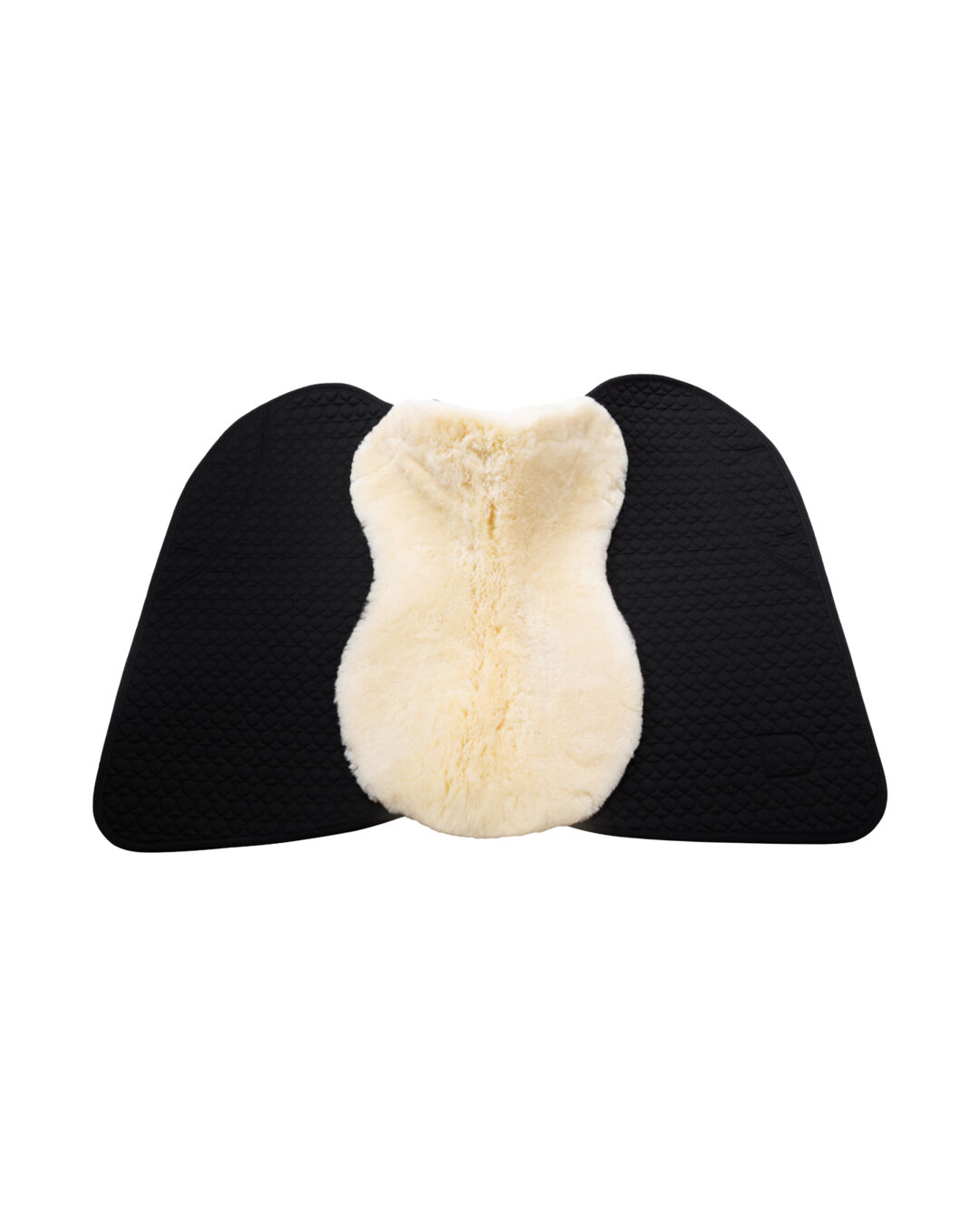 Diese Schabracke zeichnet sich durch eine Besonderheit aus: Lammfell ist nur im Sitzbereich integriert, um optimale Polsterung dort zu bieten, wo es am nötigsten ist, während die Seiten frei bleiben. Dieses Design sorgt für weniger Volumen an den Seiten und ermöglicht eine bessere Verbindung zwischen Reiter, Sattel und Pferd.