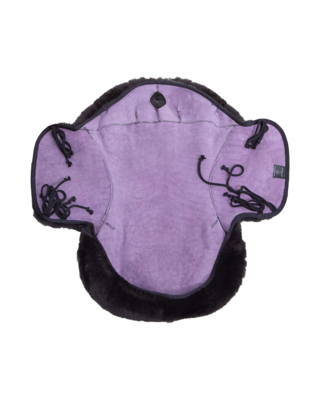 Der Bezug wird einfach über das Cantle gezogen und mit sechs robusten Kordeln sicher befestigt, sodass er während des Ritts perfekt sitzt. Die gesamte Sattelsitzfläche sowie das Cantle und die Fork sind mit weichem Lammfell bedeckt, das nicht nur für Komfort sorgt, sondern auch atmungsaktiv ist und für einen ausgeglichenen Temperaturhaushalt beim Reiten sorgt.